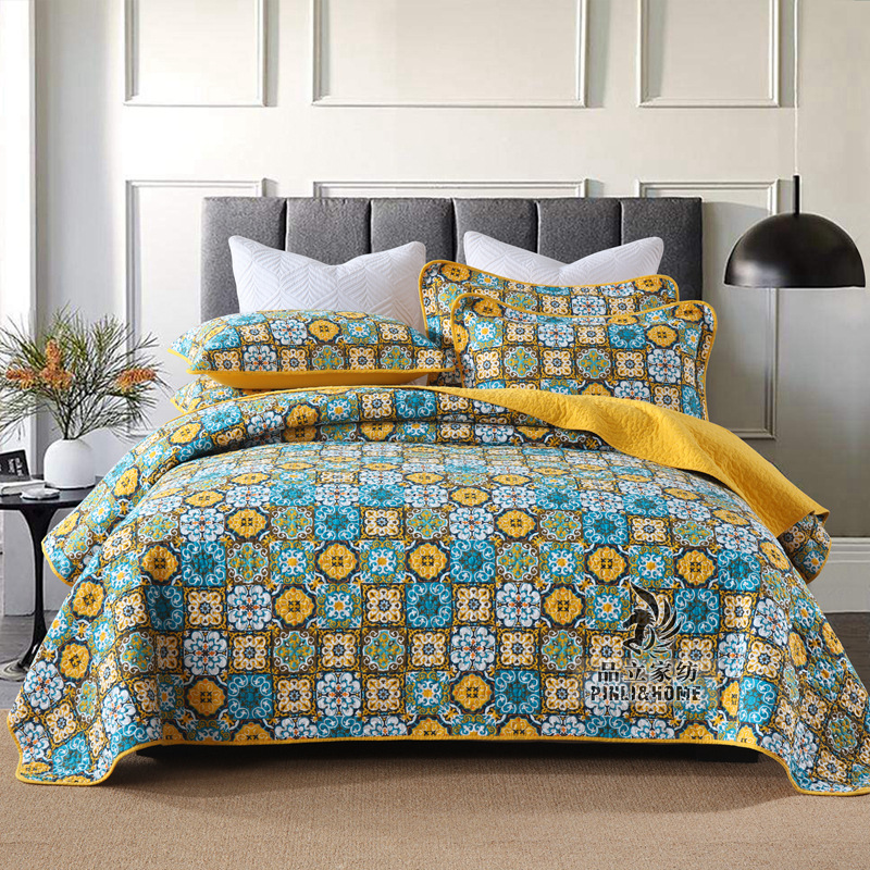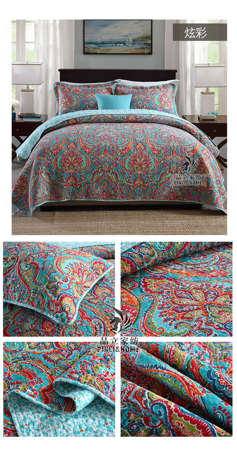 핀리 홈 섬유 해외 무역 면 침대 커버 3 종 세트 미국 모조 조각 이불 인쇄 면 에어컨 이불스토어 가기