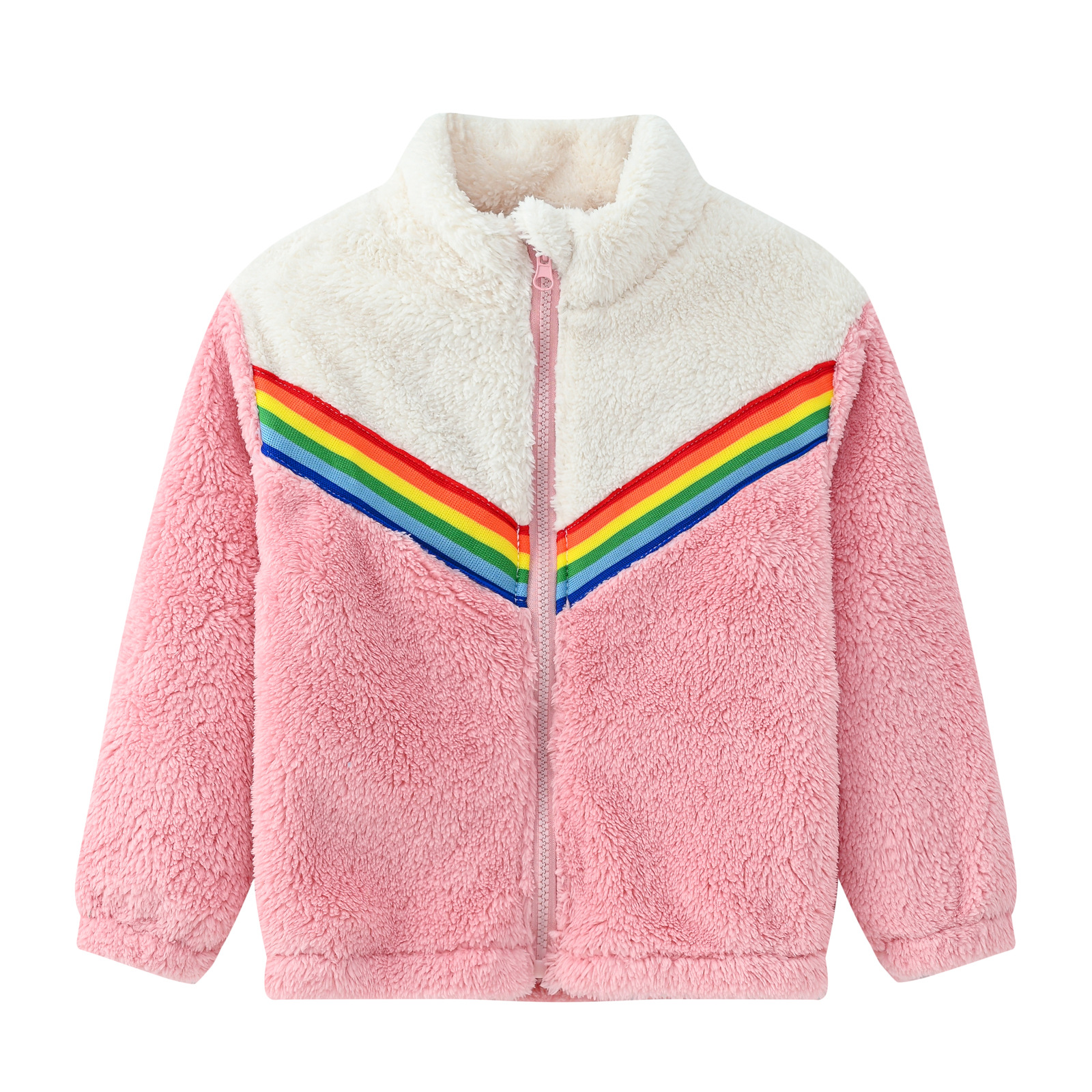 새로운 가을과 겨울 양털 어린이 코트 어린이 스티칭 리본 캐주얼 지퍼 재킷 따뜻한 모직 코트