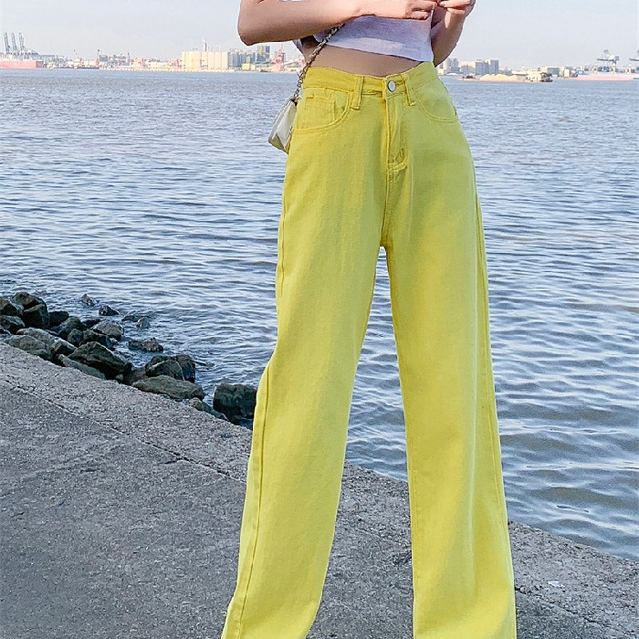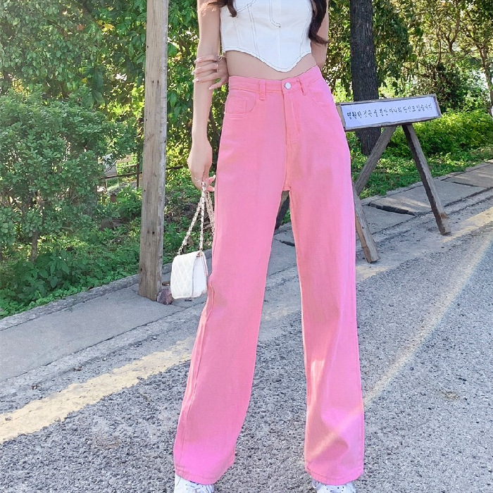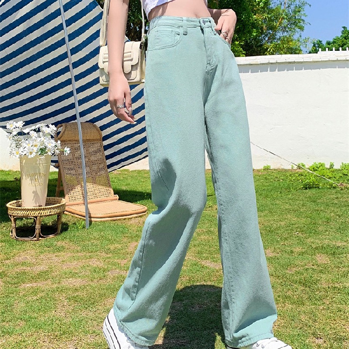 [7 색] 컬러풀한 와이드 레그 팬츠 여성용 하이 웨이스트 SAG 2022 봄과 가을 슬림 청바지 여성용 하이 스트리트 팬츠
