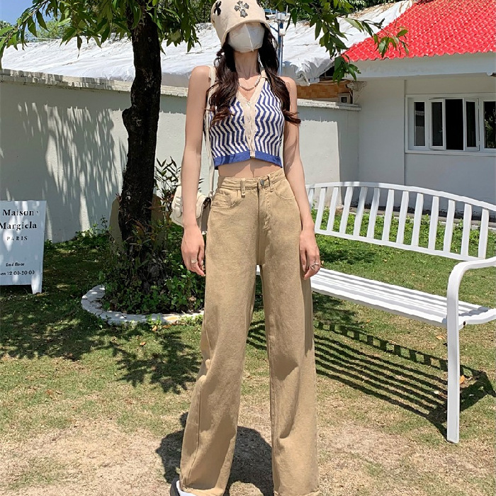 [7 색] 컬러풀한 와이드 레그 팬츠 여성용 하이 웨이스트 SAG 2022 봄과 가을 슬림 청바지 여성용 하이 스트리트 팬츠스토어 가기