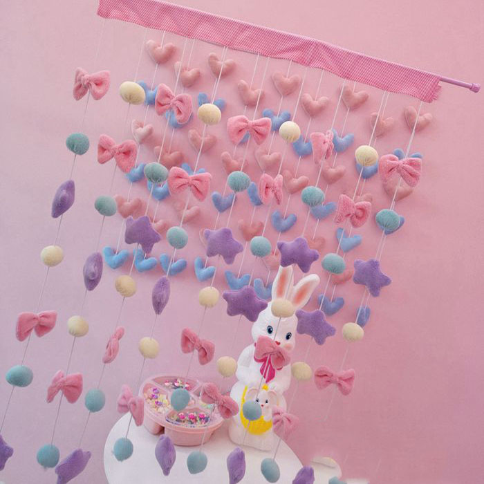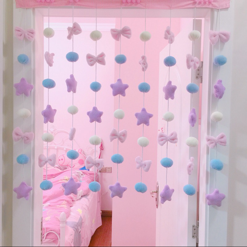 敲敲好看的窗帘主要做装饰的哈 软妹房装饰敲棒哦材料:毛绒布 颜色:红,黄,蓝,黑,粉