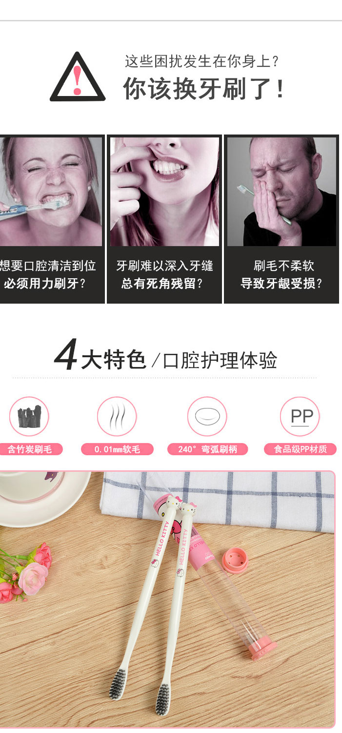 凯蒂猫创意可爱牙刷成人牙刷便携软毛超细防出血牙刷简约细毛刷