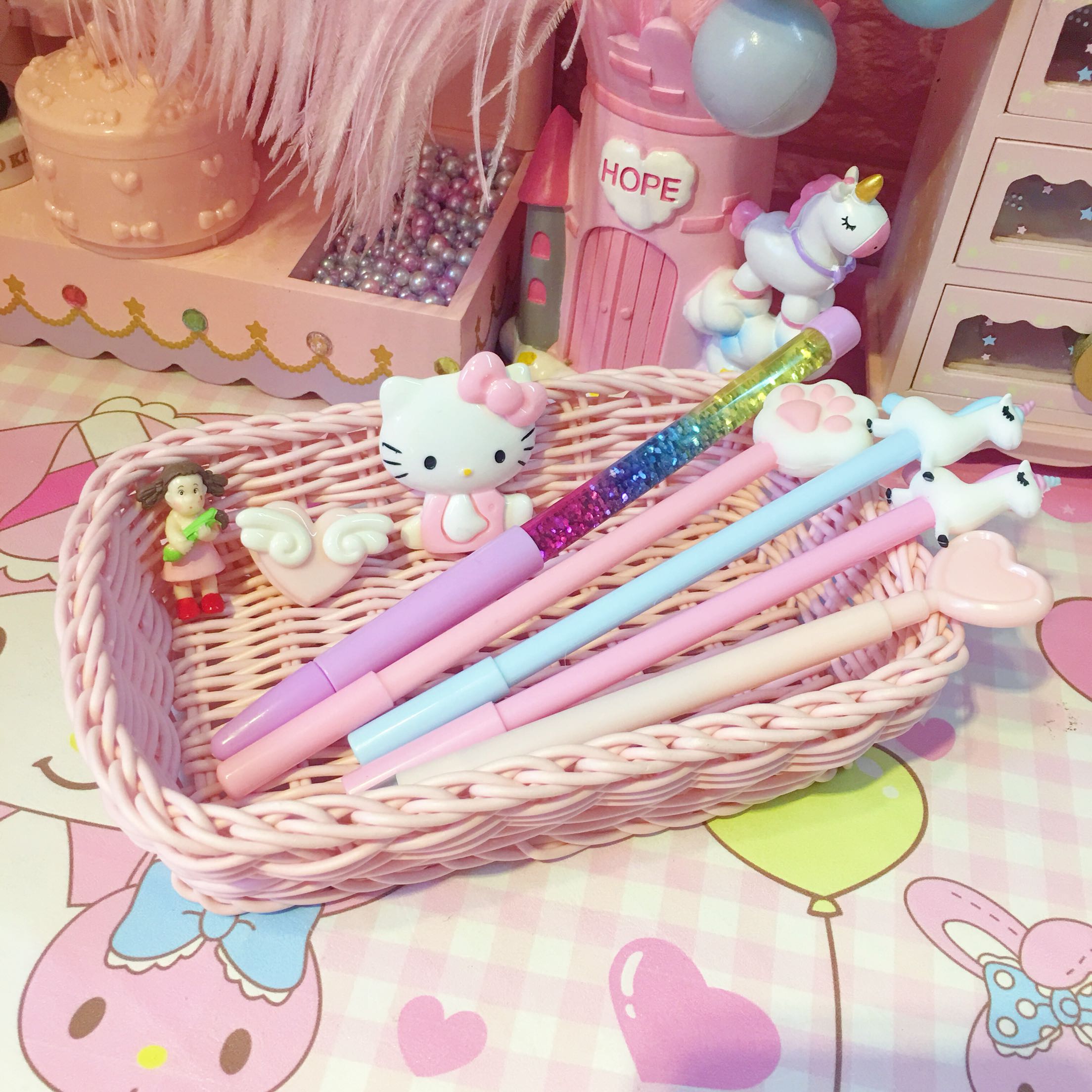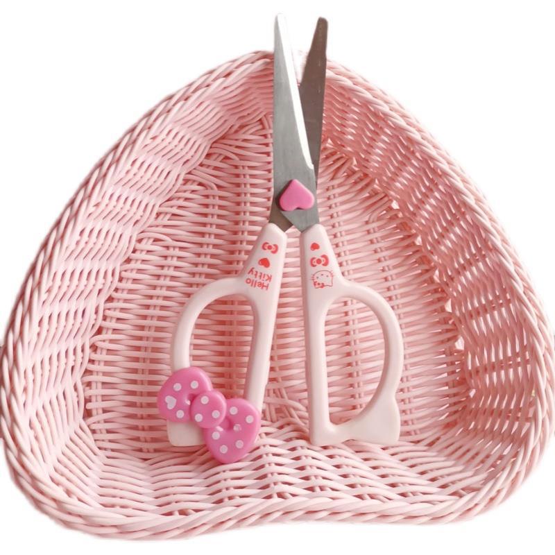소녀의 심장 데스크탑 보관 바구니 핑크 잡화 화장품 보관 바구니 만화 등나무 바구니 학생과 어린이를위한 낙하 방지