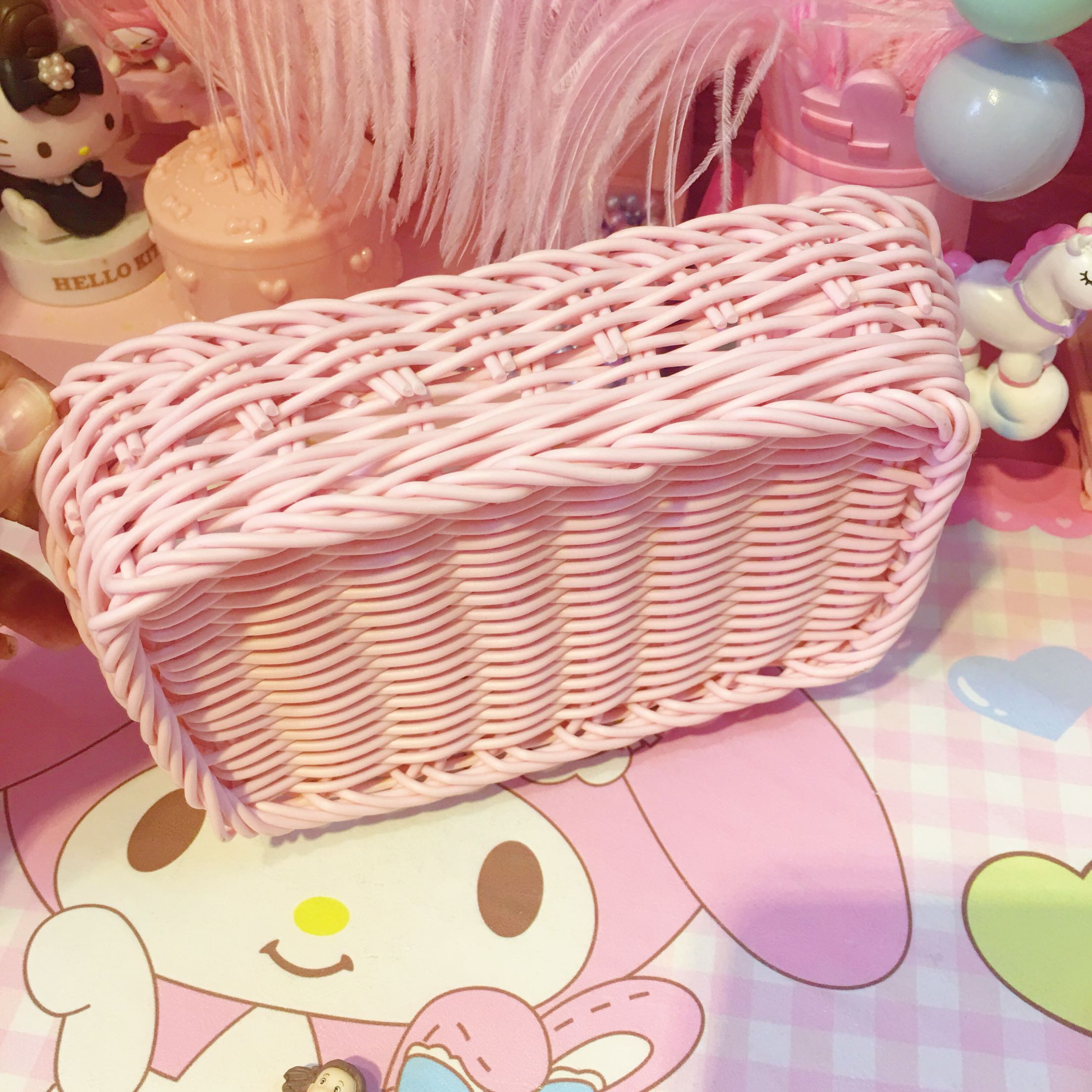 少女心藤编收纳蓝 材质:塑料藤编 尺寸:约20*14*6cm 可以收纳桌面一些小杂物哦~ 很粉很少女