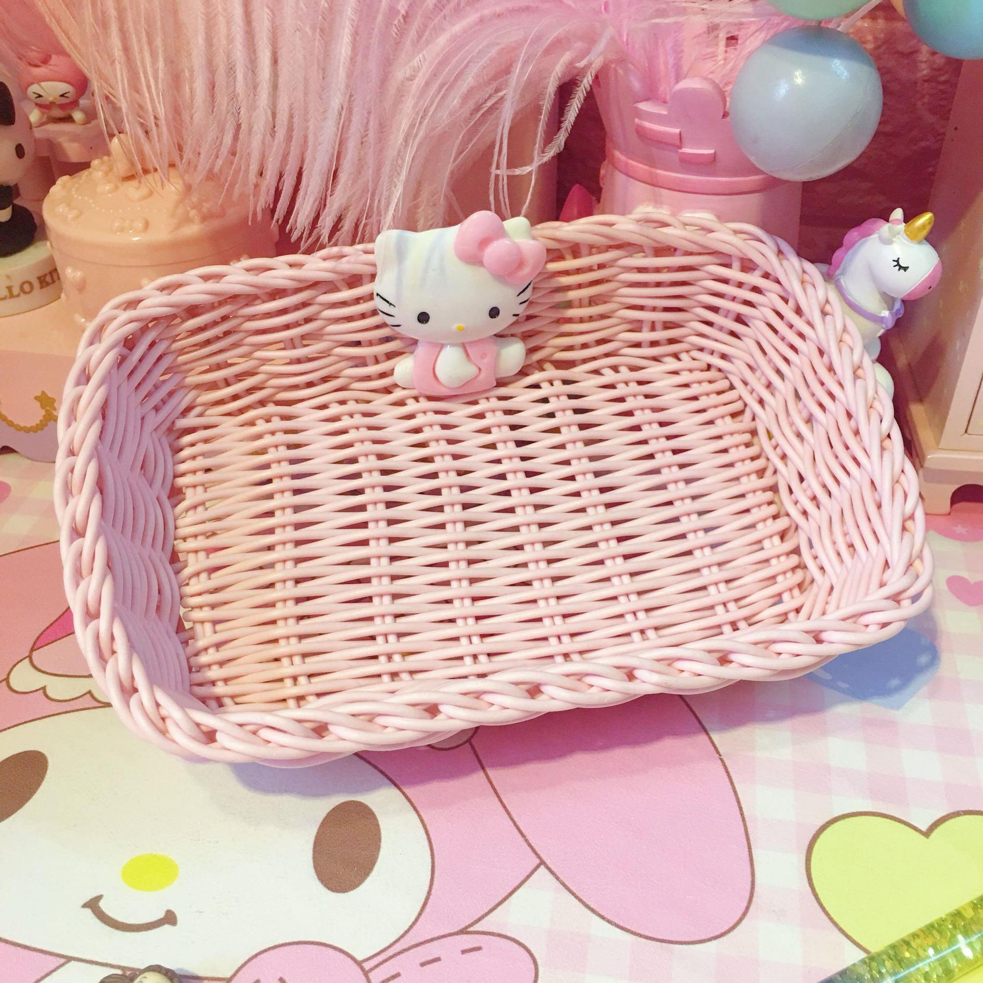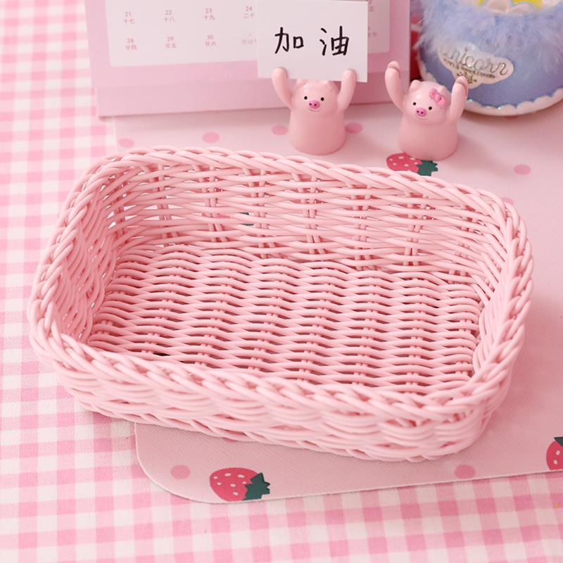 少女心桌面收纳篮粉色杂物化妆品收纳筐卡通藤编篮筐学生儿童抗摔