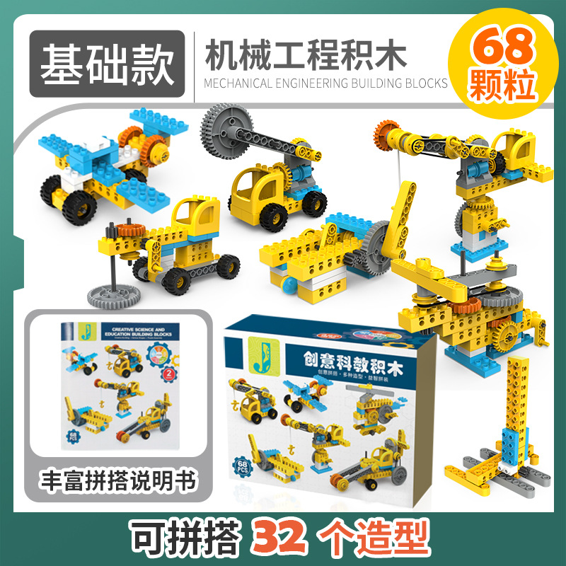 어린이 다양한 빌딩 블록 자동차 수제 DIY 조립 엔지니어링 차량 대형 입자 기어 기계 빌딩 블록 3-6 소년 장난감스토어 가기