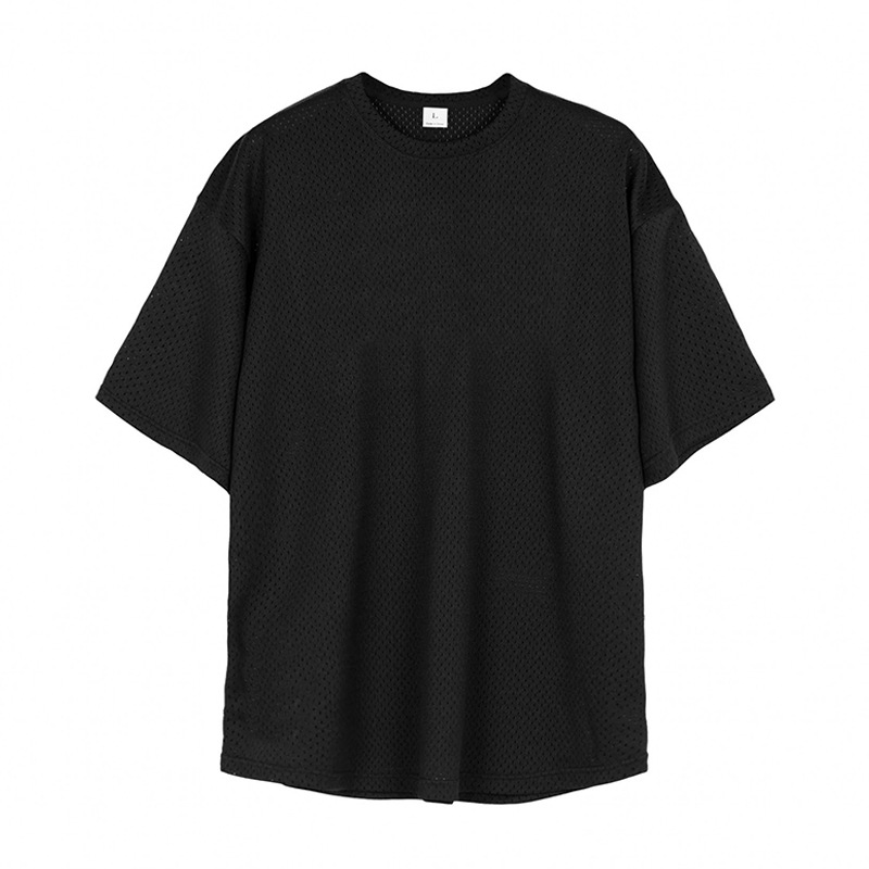 라이트 보드 플러스 사이즈 대형 드롭 숄더 느슨한 대형 메쉬 하프 슬리브 티셔츠 남성 보디 빌딩 피트니스 스포츠 짧은 소매