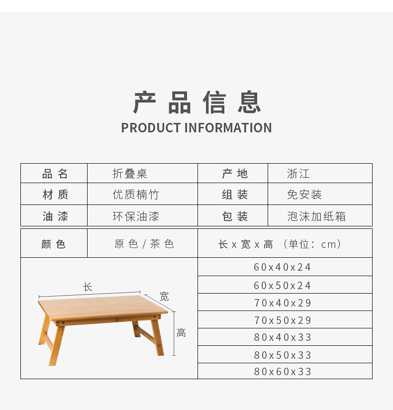 (모든 대나무 무료 설치) 학생 작업 책상 접이식 침대 책상 편리한 컴퓨터 책상 게으른 야외 책상스토어 가기