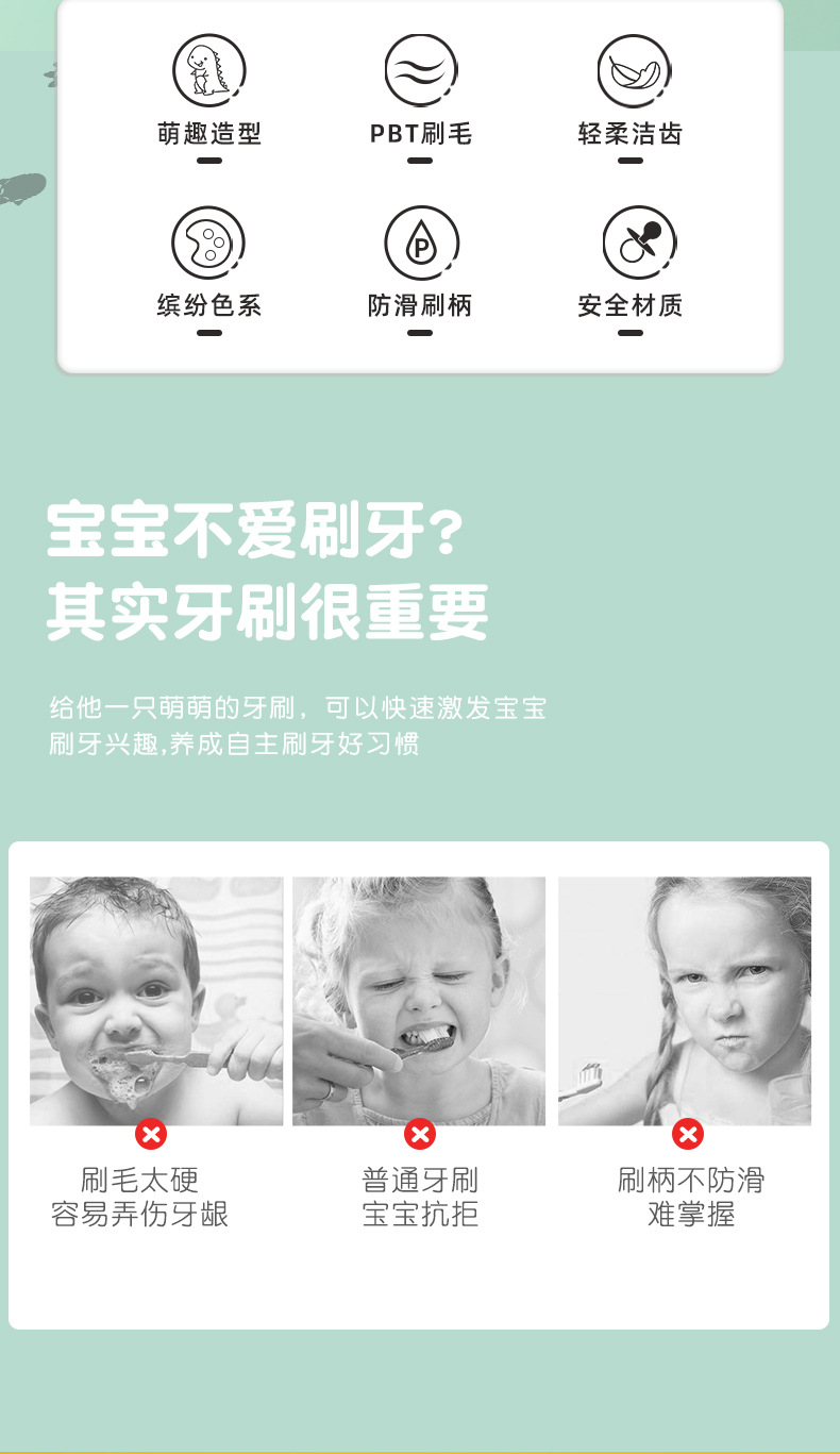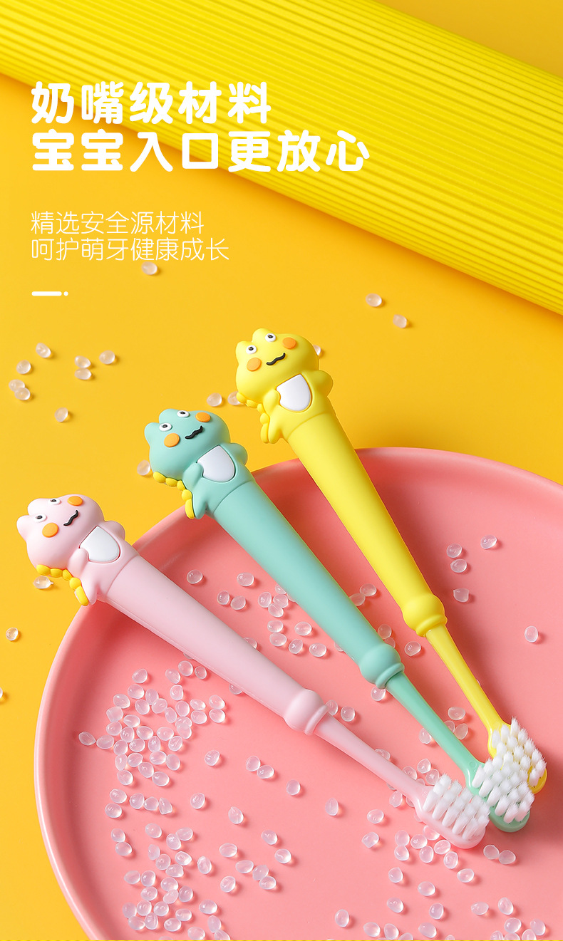 아침 의사 어린이 개구리 칫솔 2-12 세 실리콘 브러시 핸들 만화 공룡 초미세 부드러운 강모 칫솔 도매 제조 업체