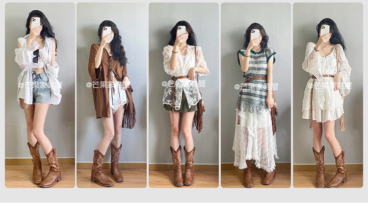 재고 그는 Sui 같은 가죽 마틴 부츠 스퀘어 헤드 두꺼운 굽 자수 나이트 부츠 여성용 v-입 미들 부츠 웨스턴 데님스토어 가기