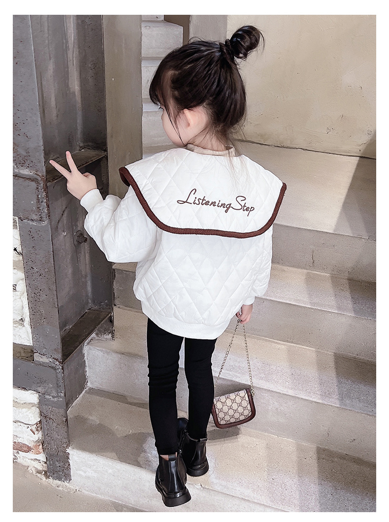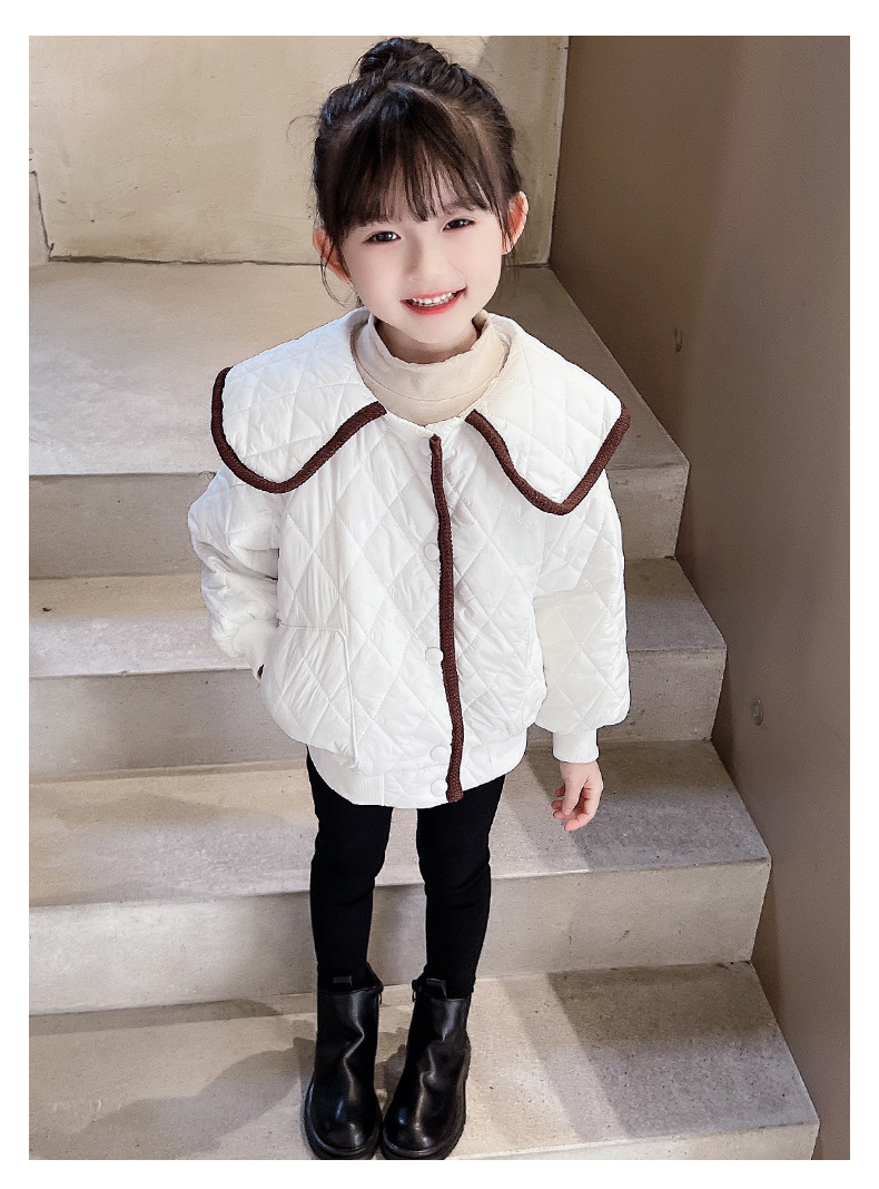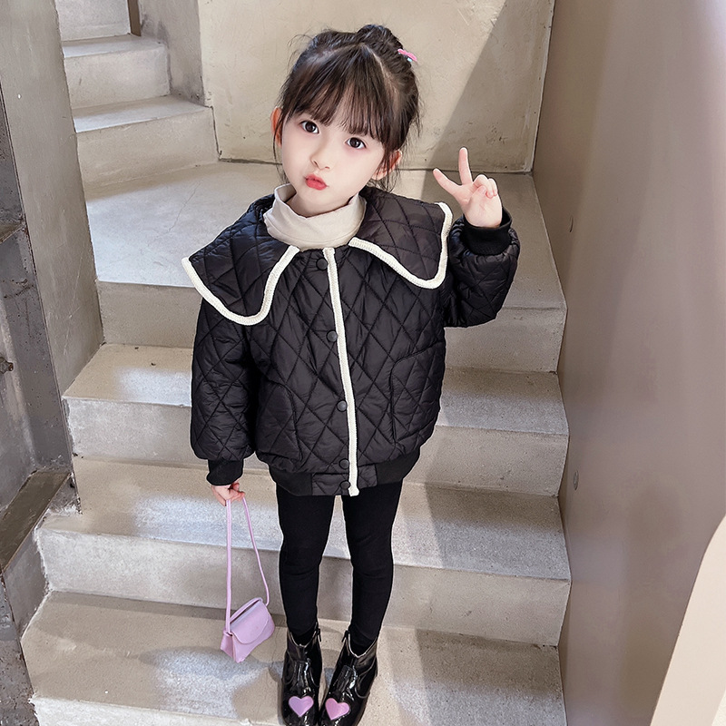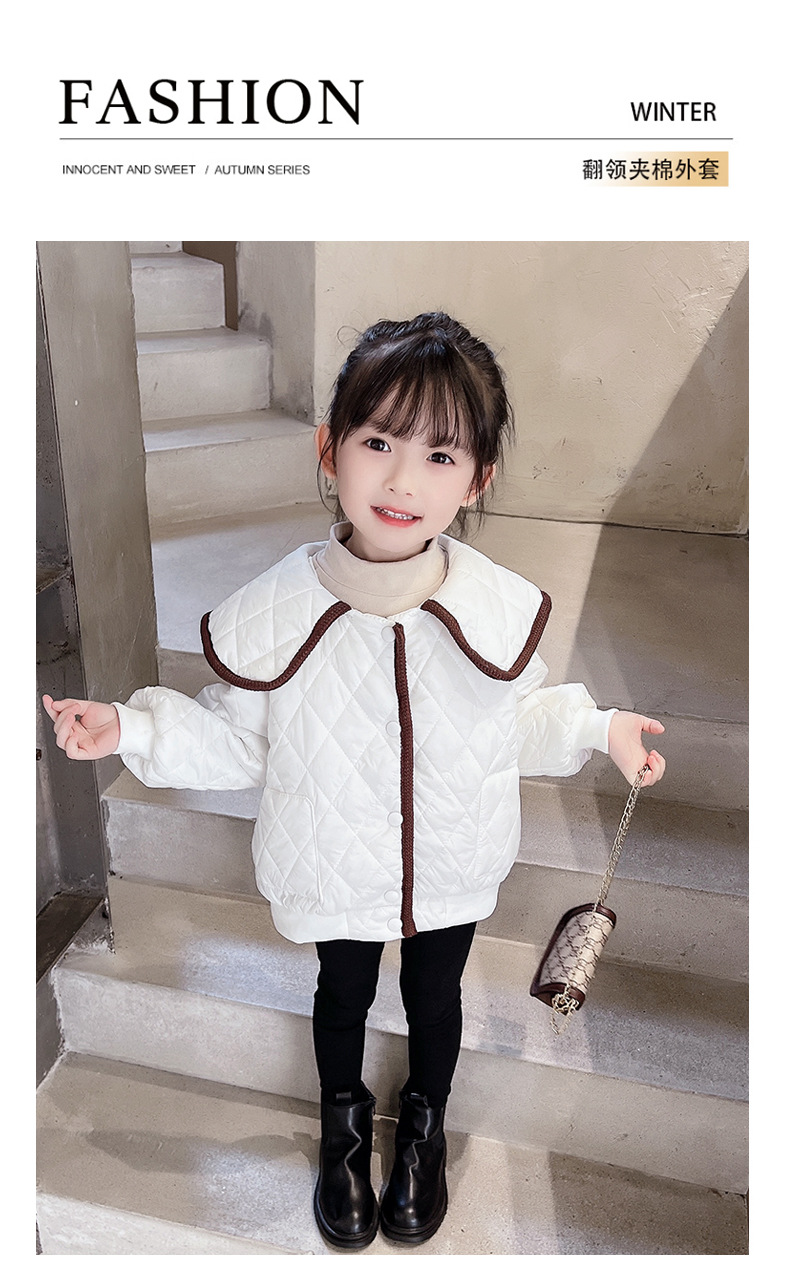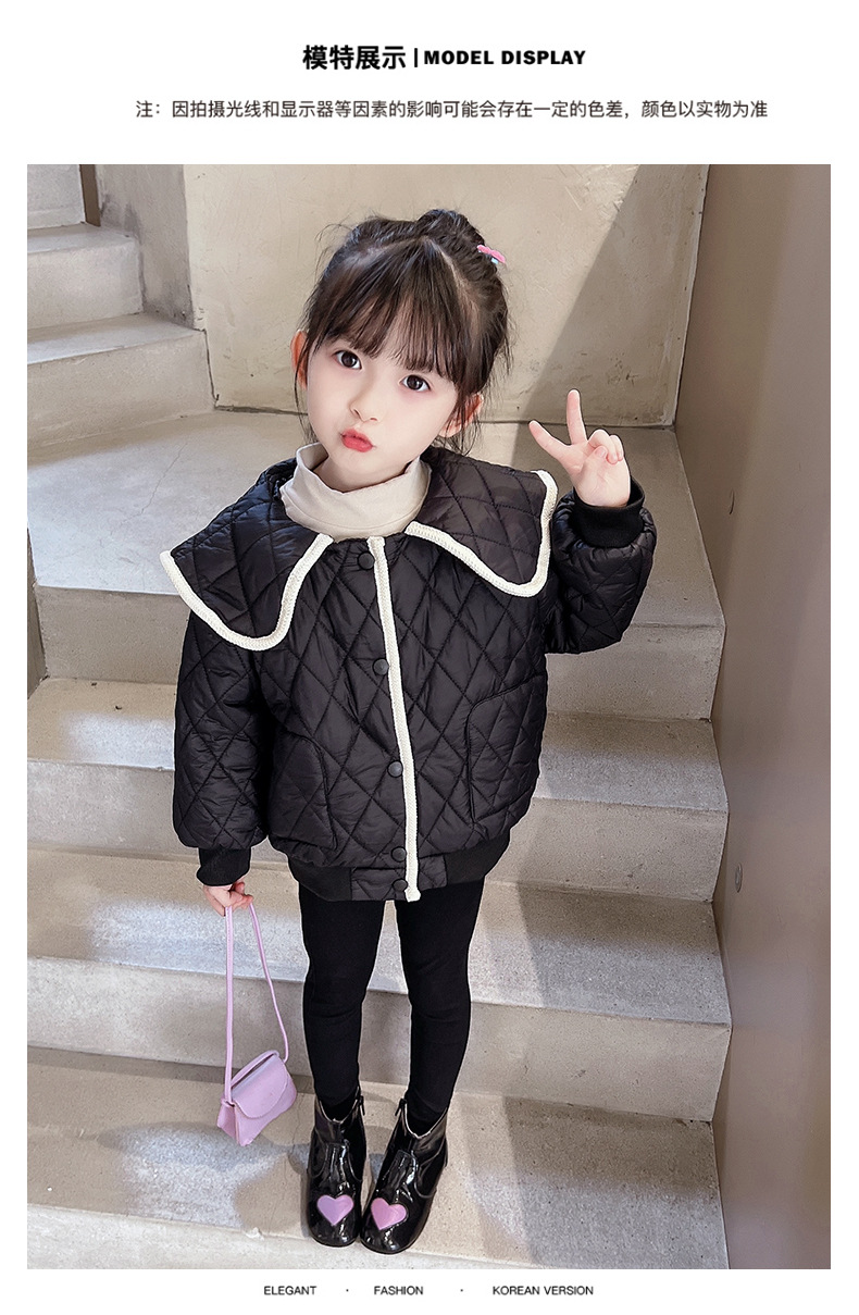 우아한 외국 스타일 여자 면 패딩 재킷 도매 두꺼운 따뜻한 겨울 면 패딩 코트 네이비 바람 인형 칼라 아기 면 패딩 재킷스토어 가기