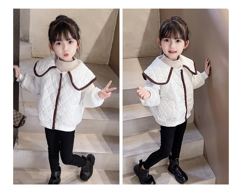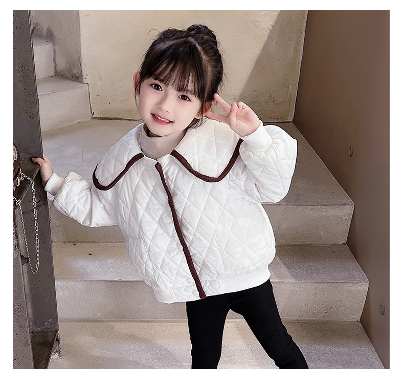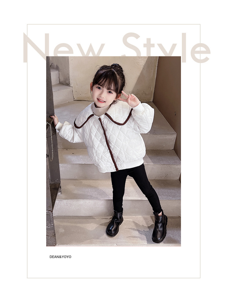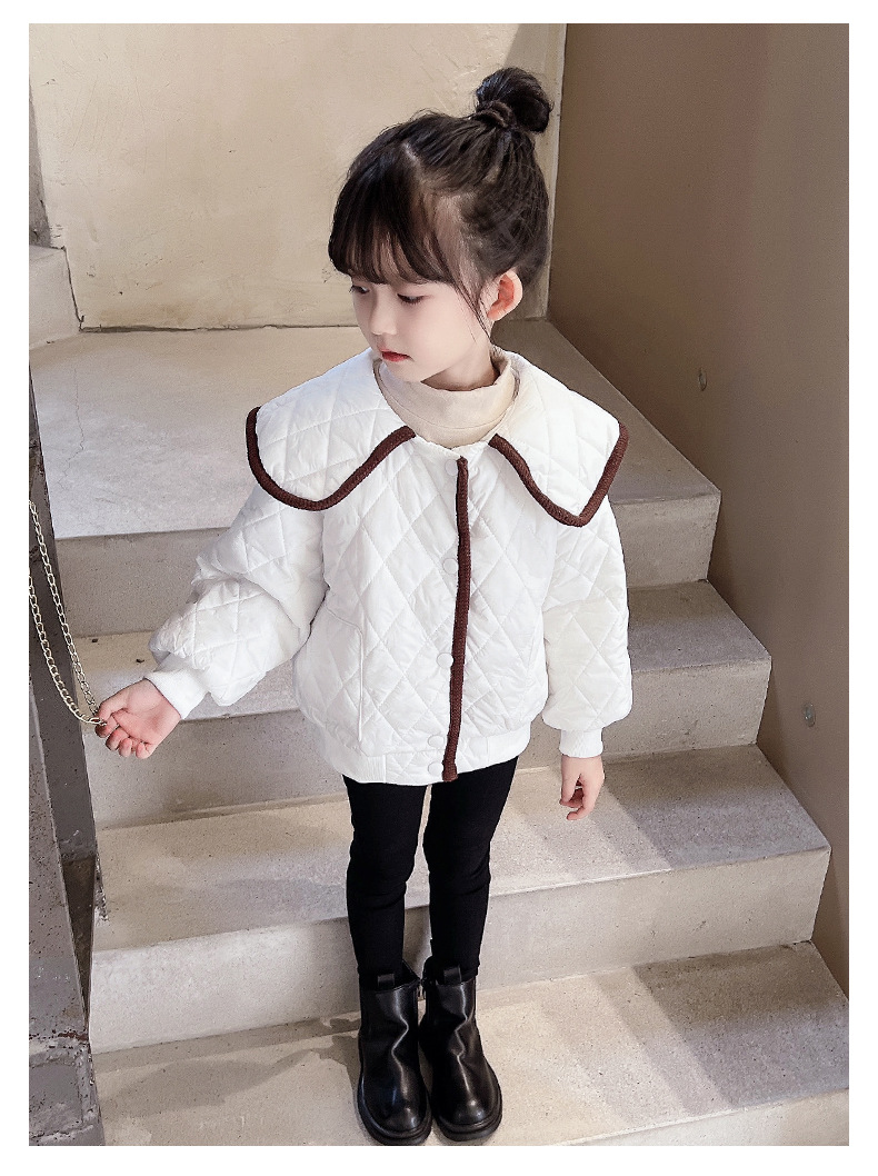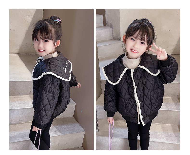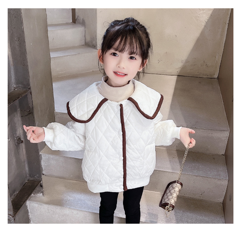 우아한 외국 스타일 여자 면 패딩 재킷 도매 두꺼운 따뜻한 겨울 면 패딩 코트 네이비 바람 인형 칼라 아기 면 패딩 재킷스토어 가기