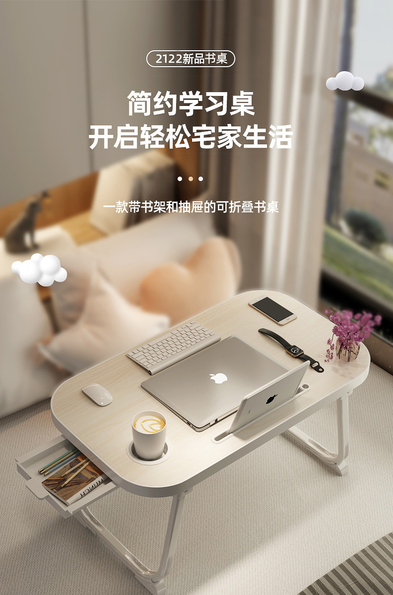 새로운 스타일 다기능 간단한 작은 테이블 대형 데스크탑 서랍 침대 컴퓨터 책상 접이식 게으른 책상스토어 가기