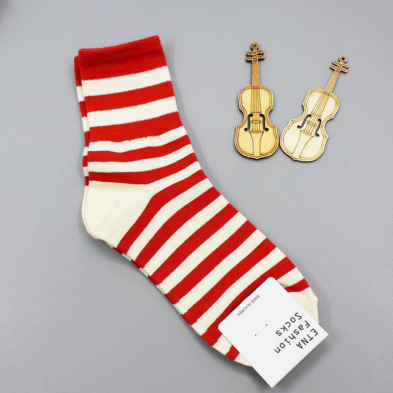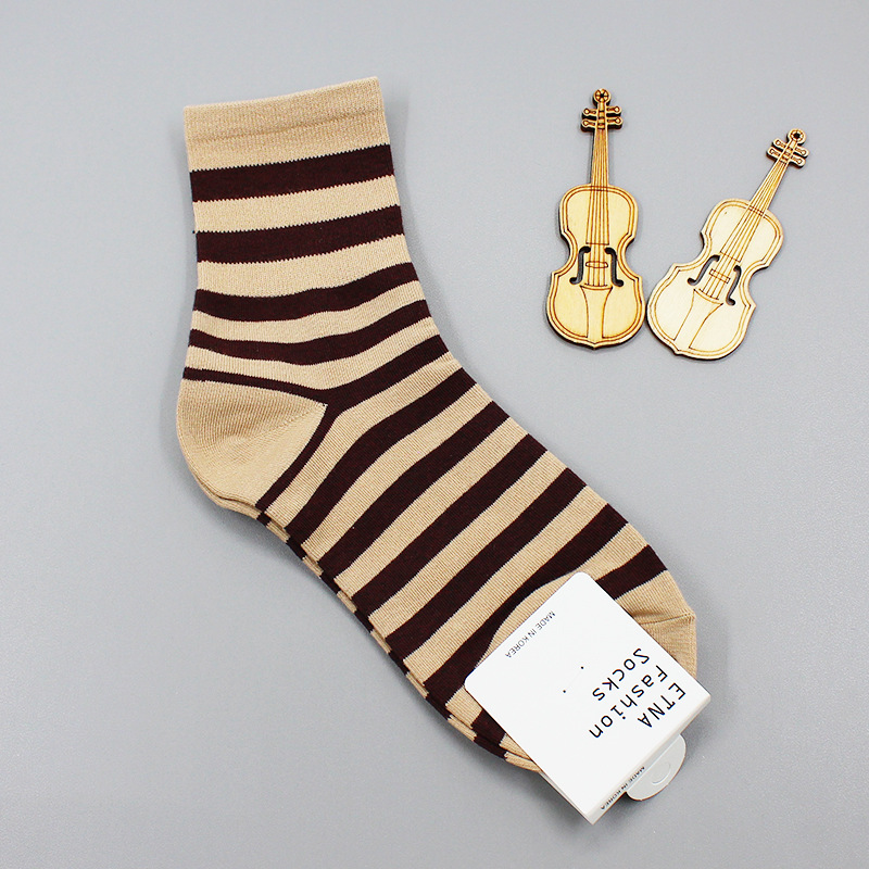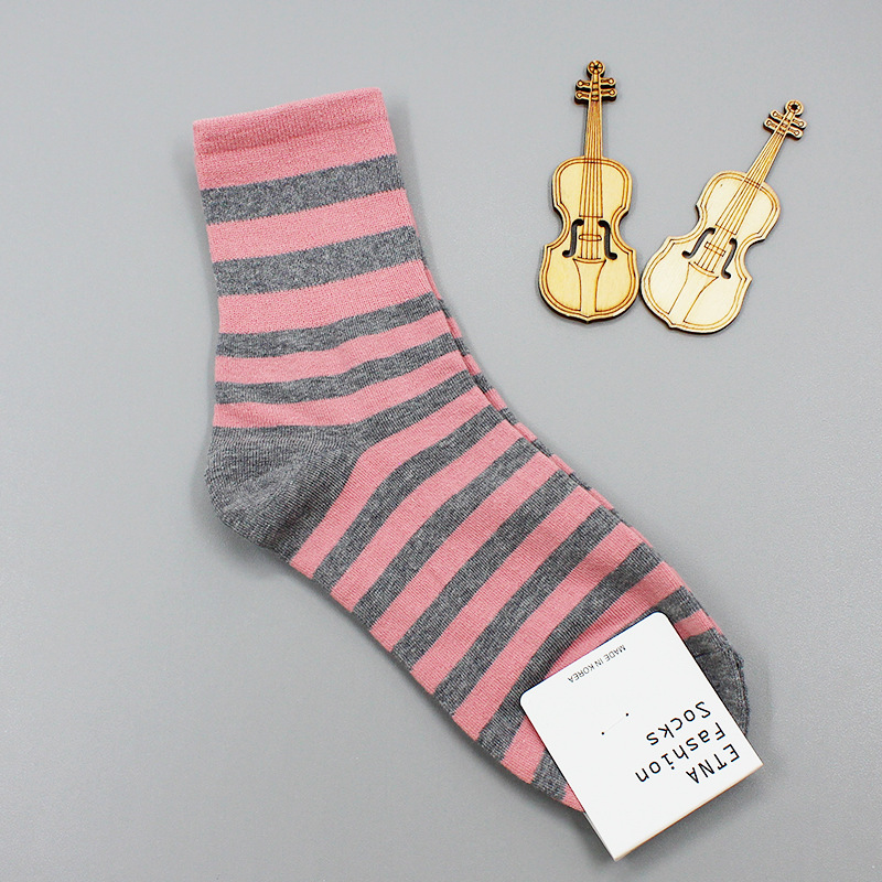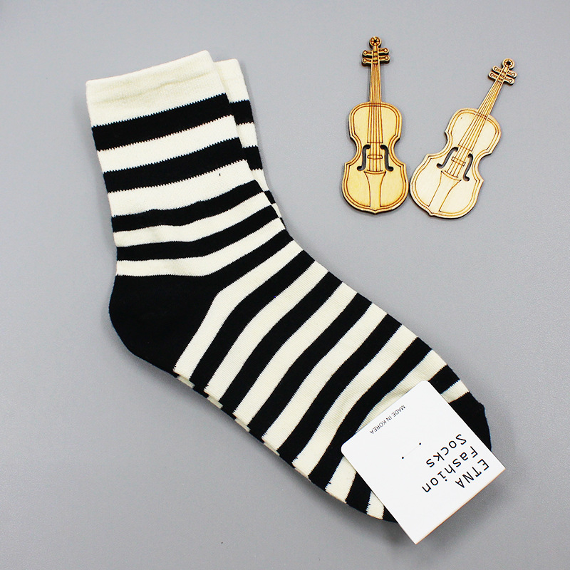 2022 가을과 겨울 새로운 한국 양말 도매 동대문 ETNA 심플 스트라이프 캐주얼 한국 여성 튜브 양말