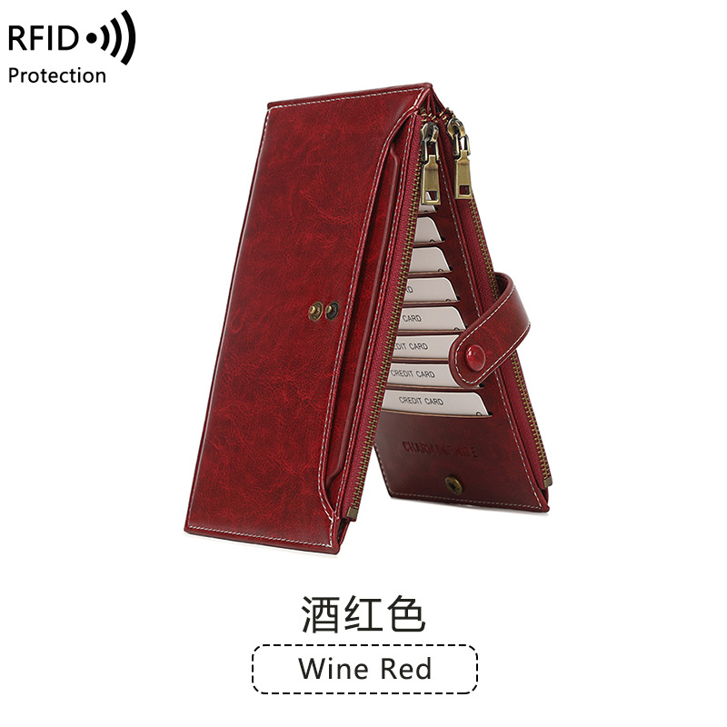 크로스 보더 핫 세일 RFID 자기 방지 지갑 더블 레이어 지퍼 휴대 전화 가방 지갑 유럽과 미국의 새로운 대용량 긴 지갑