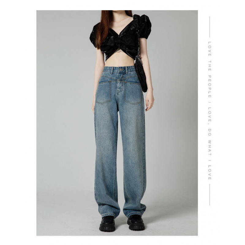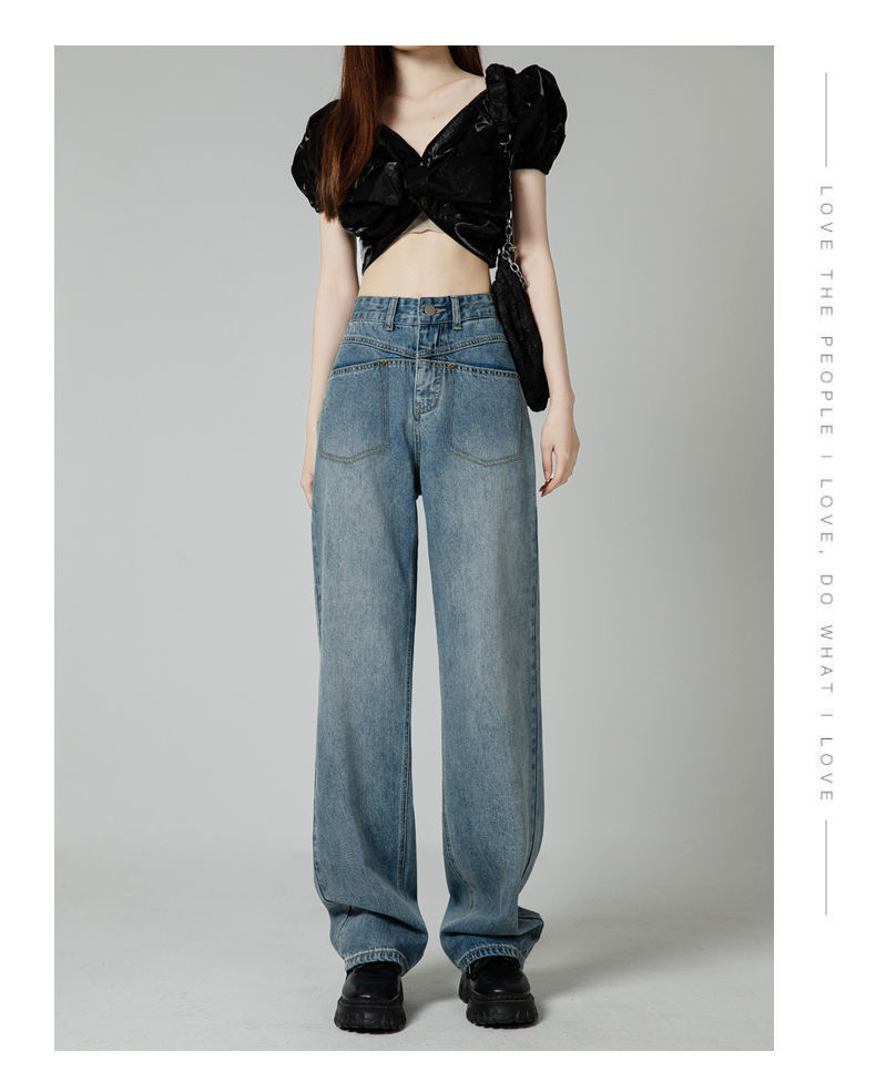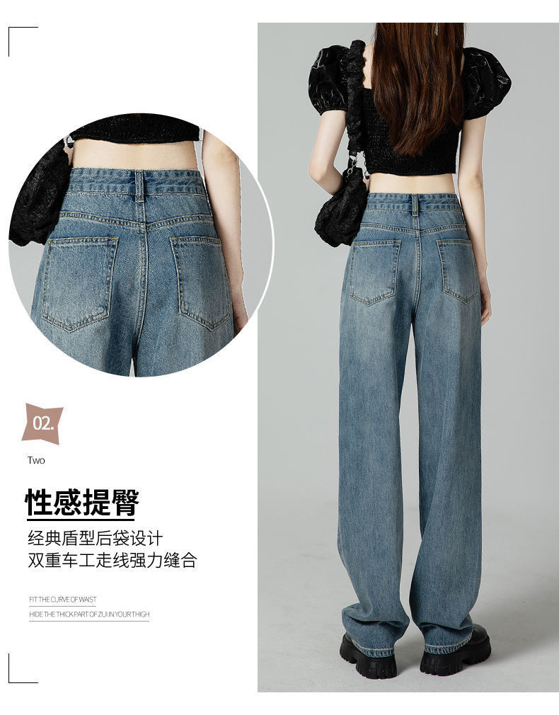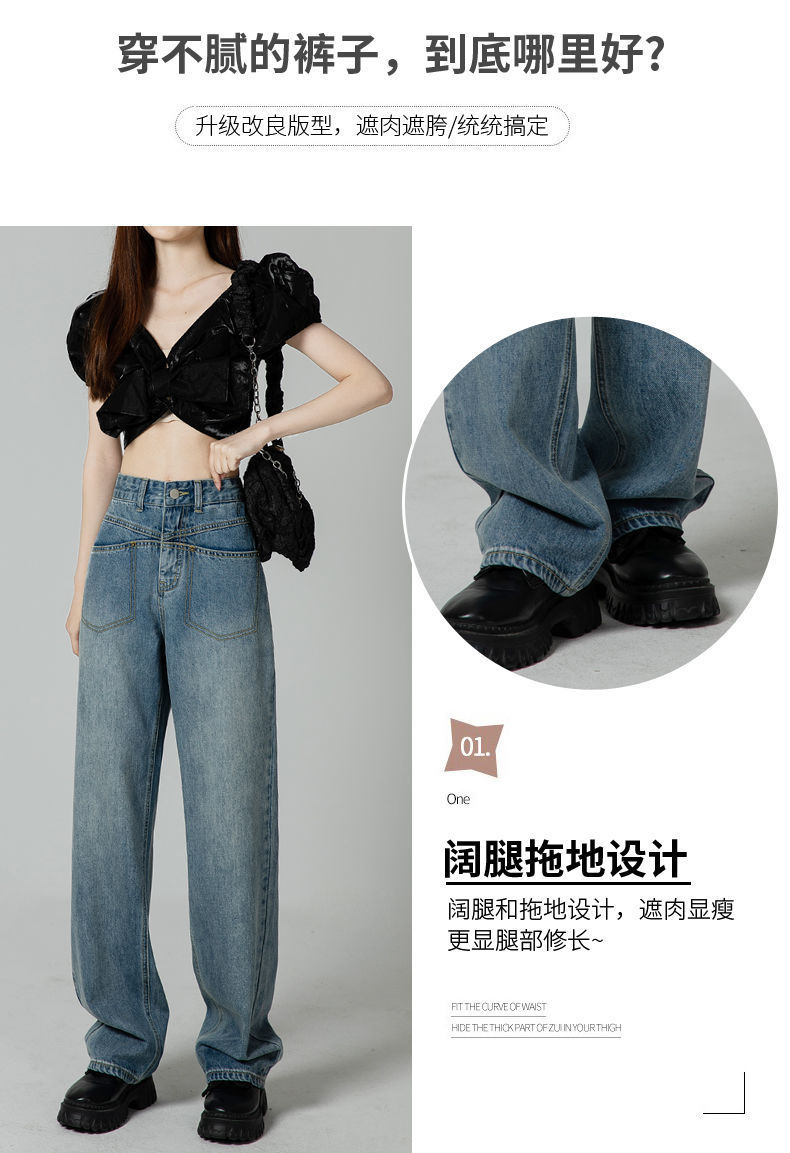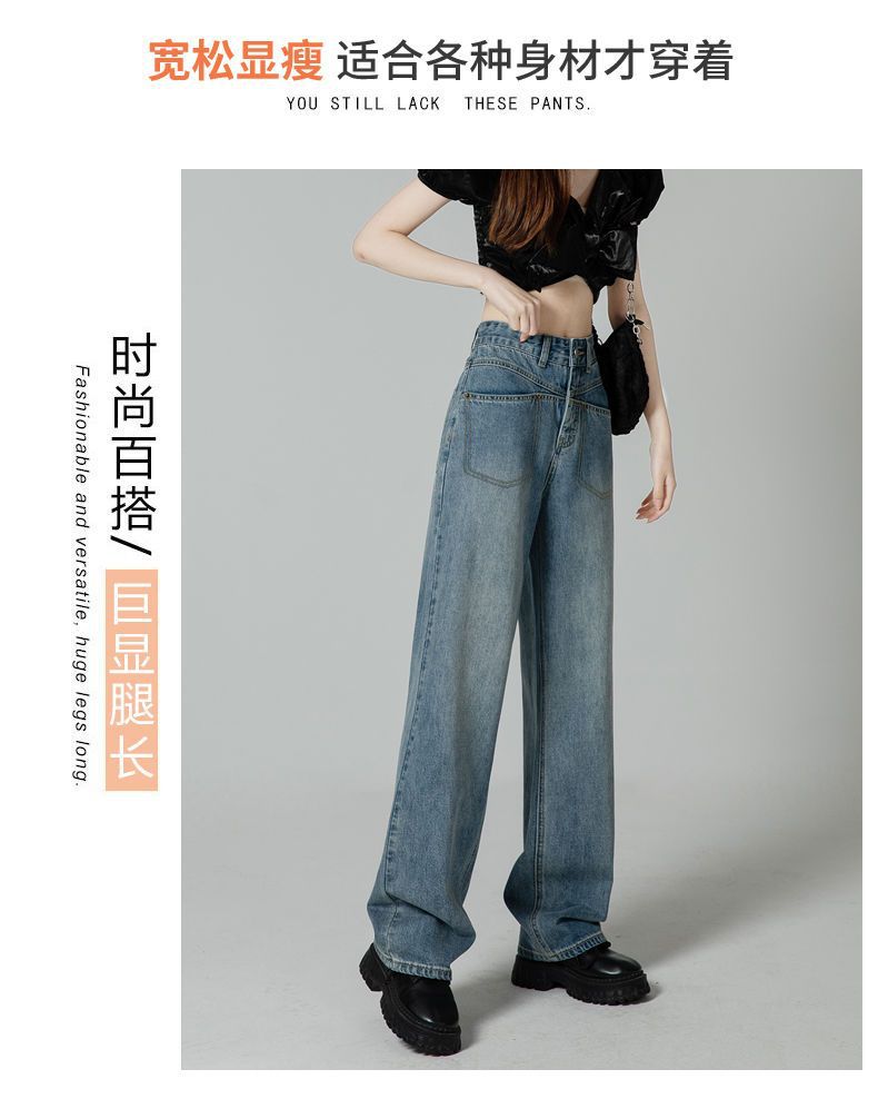 와이드 레그 진 여성의 가을 새로운 2022 하이 웨이스트 슬리밍 스트레이트 느슨한 드레이핑 바지스토어 가기