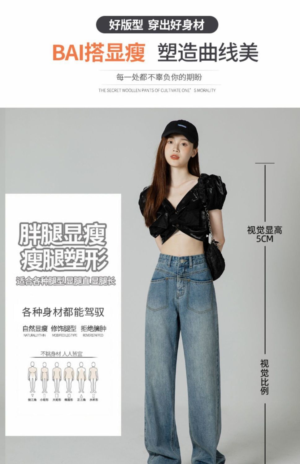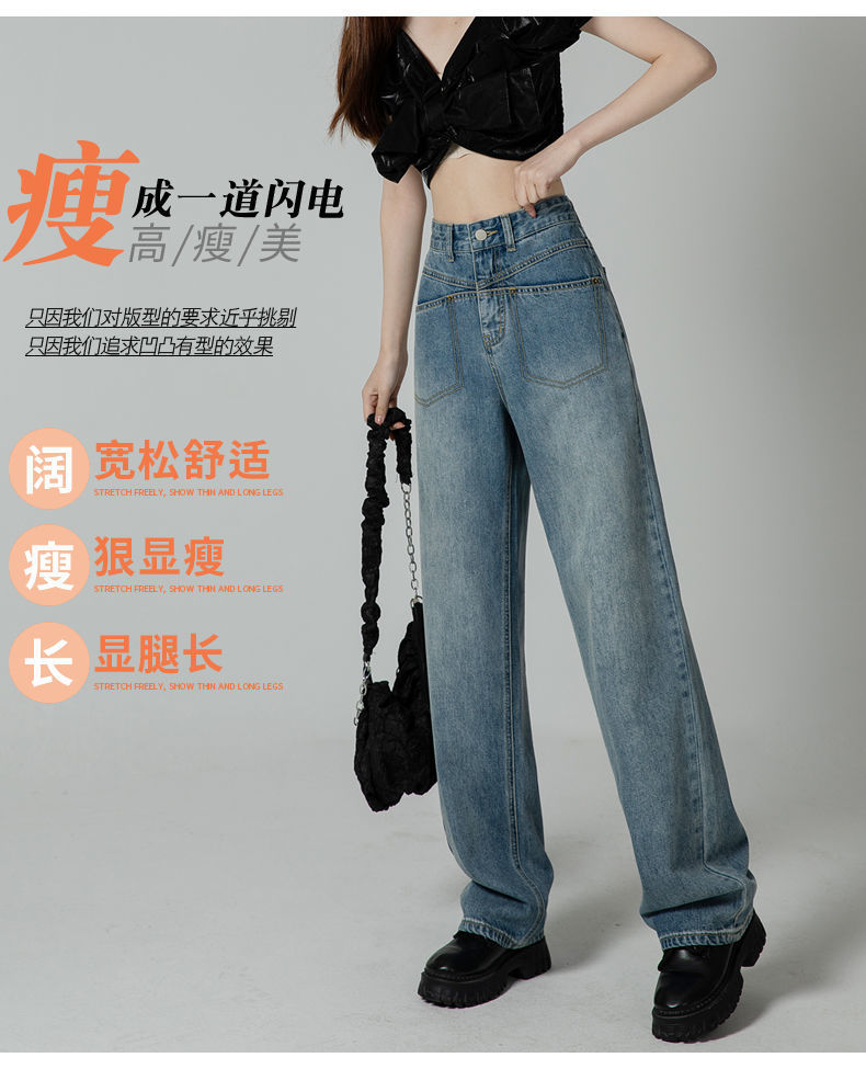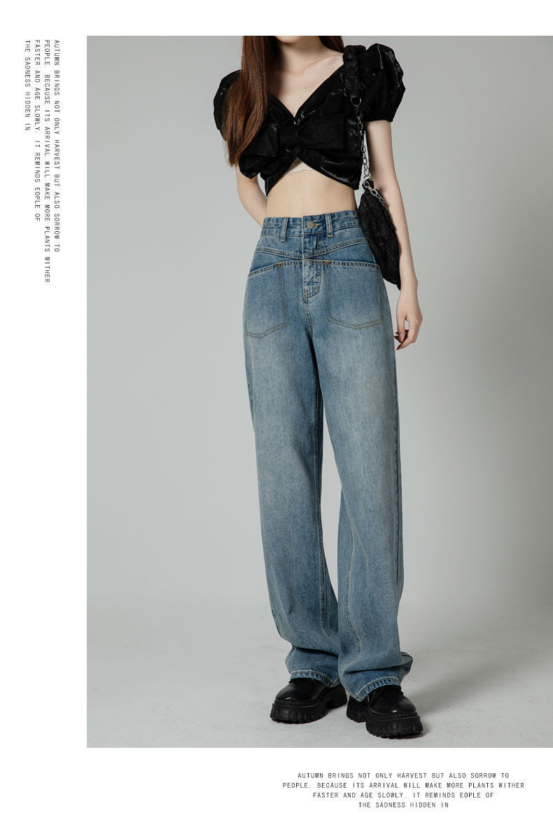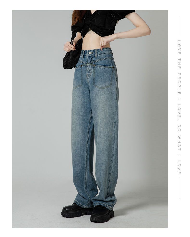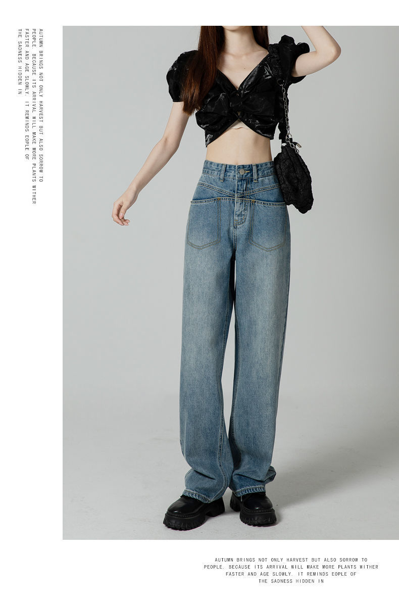 와이드 레그 진 여성의 가을 새로운 2022 하이 웨이스트 슬리밍 스트레이트 느슨한 드레이핑 바지스토어 가기