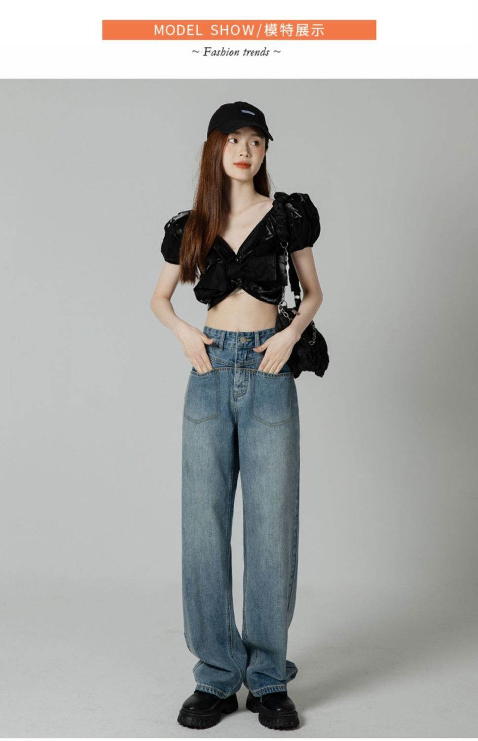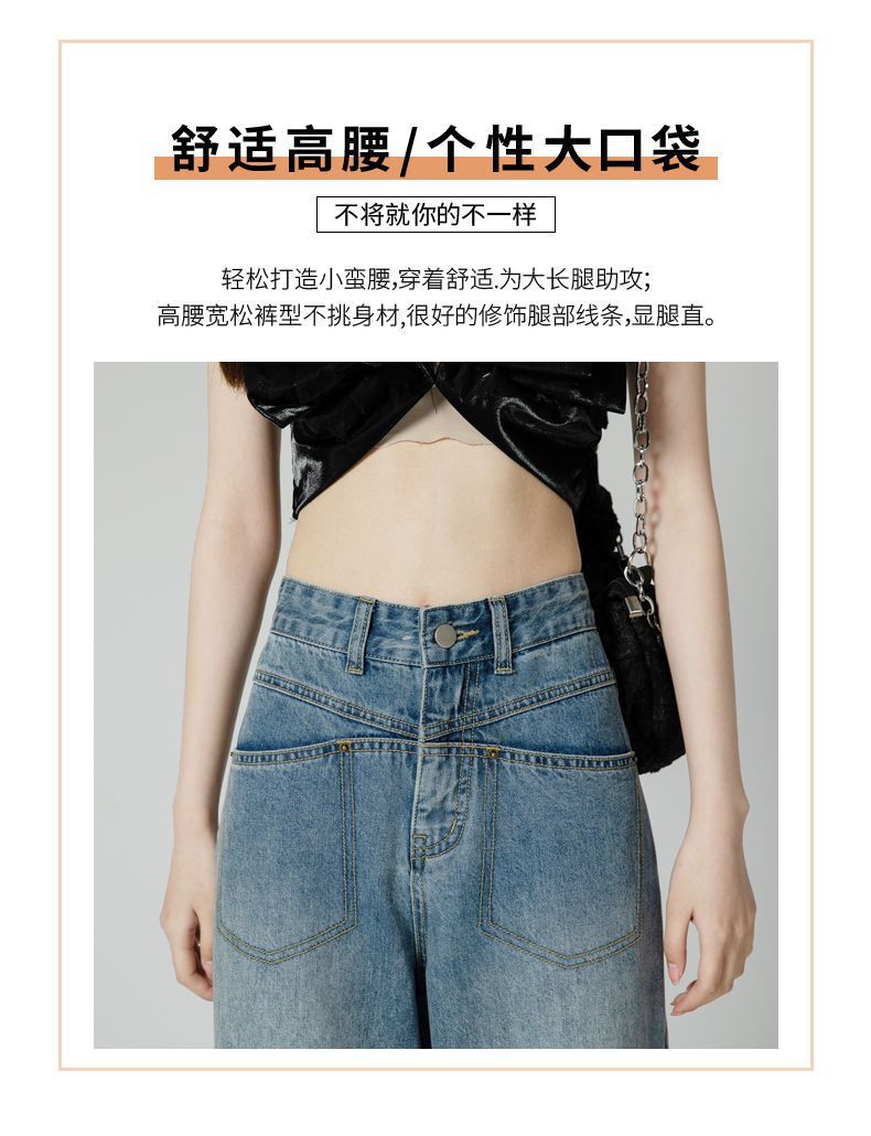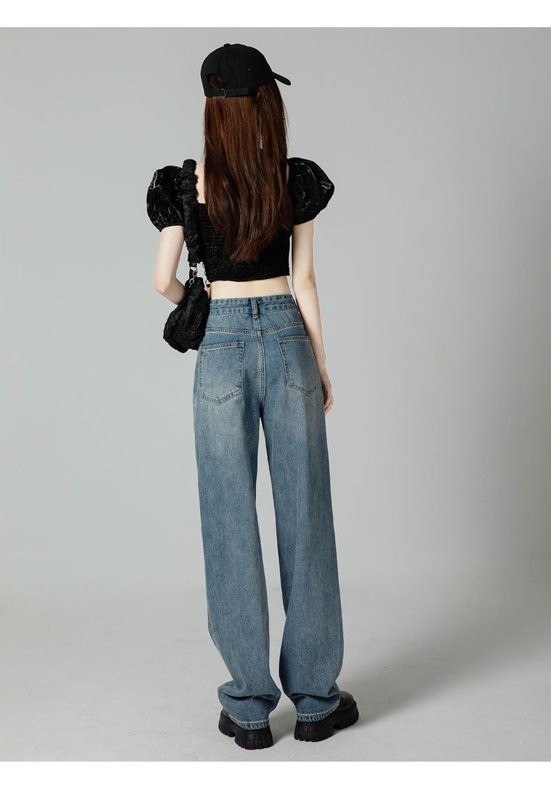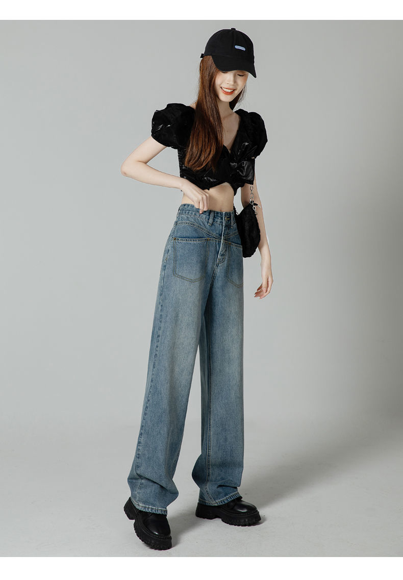 와이드 레그 진 여성의 가을 새로운 2022 하이 웨이스트 슬리밍 스트레이트 느슨한 드레이핑 바지스토어 가기