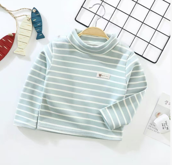 가을과 겨울 하이 칼라 바닥 셔츠 아동복 새로운 아기 긴팔 소년 소녀 티셔츠 중소 아동 코트 도매스토어 가기