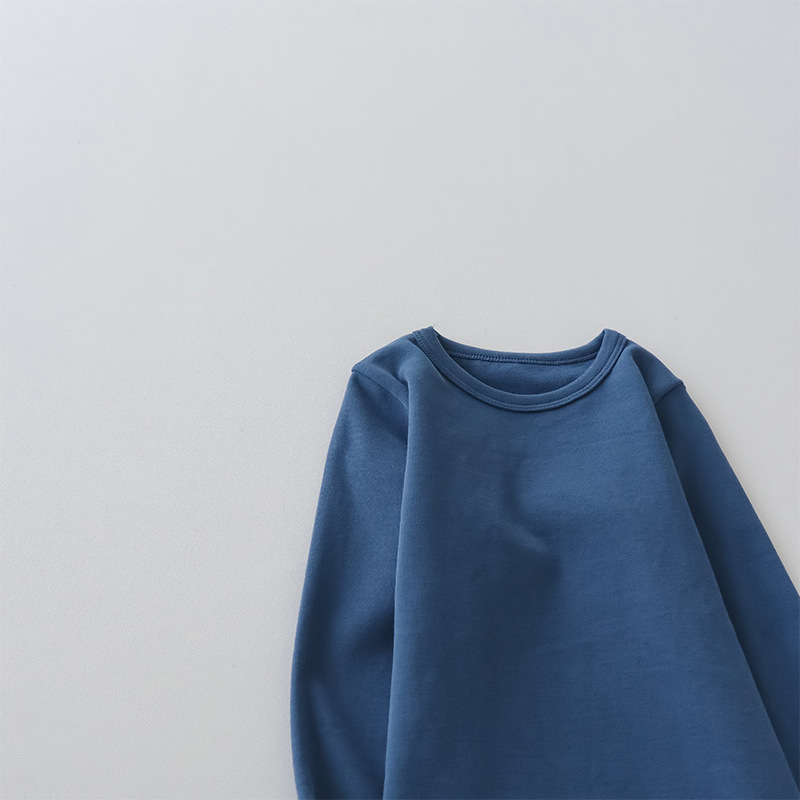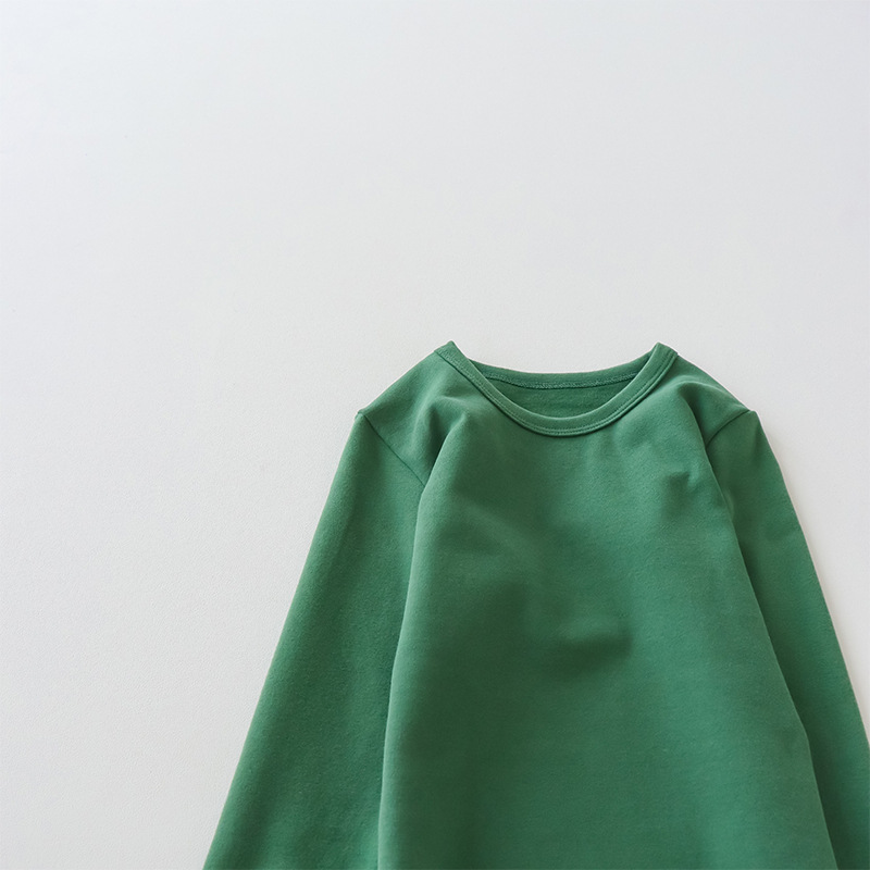 2025 중대형 아동용 순면 긴팔 티셔츠 봄 가을용 루즈핏 남녀공용 기모 상의 150160