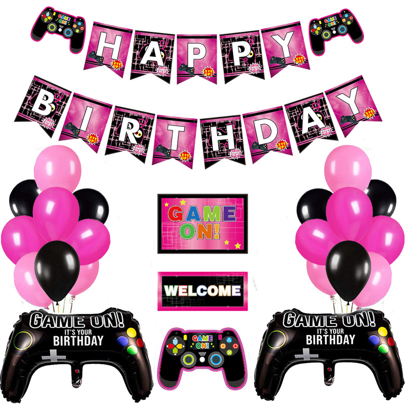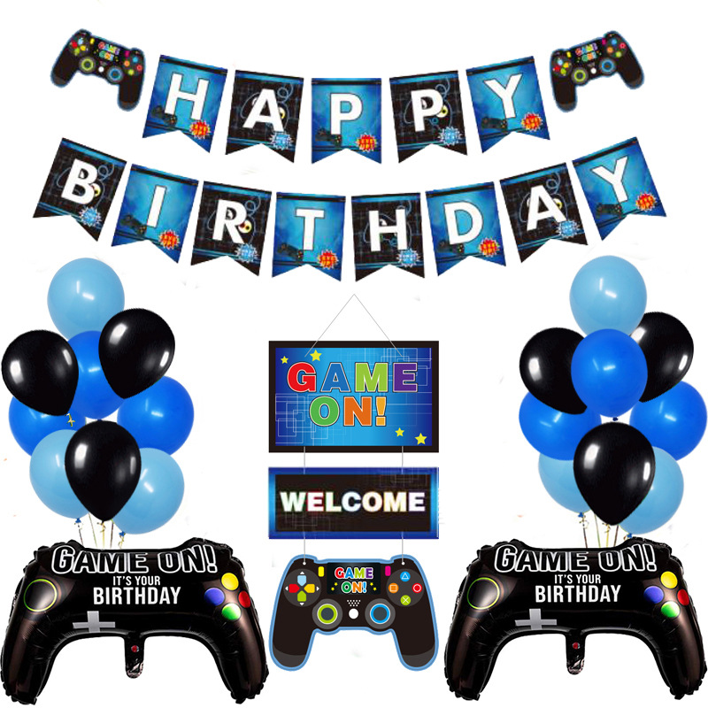 게임 테마 생일 파티 장식 용품 생일 플래그 알루미늄 호일 풍선 도어 카드 태그스토어 가기