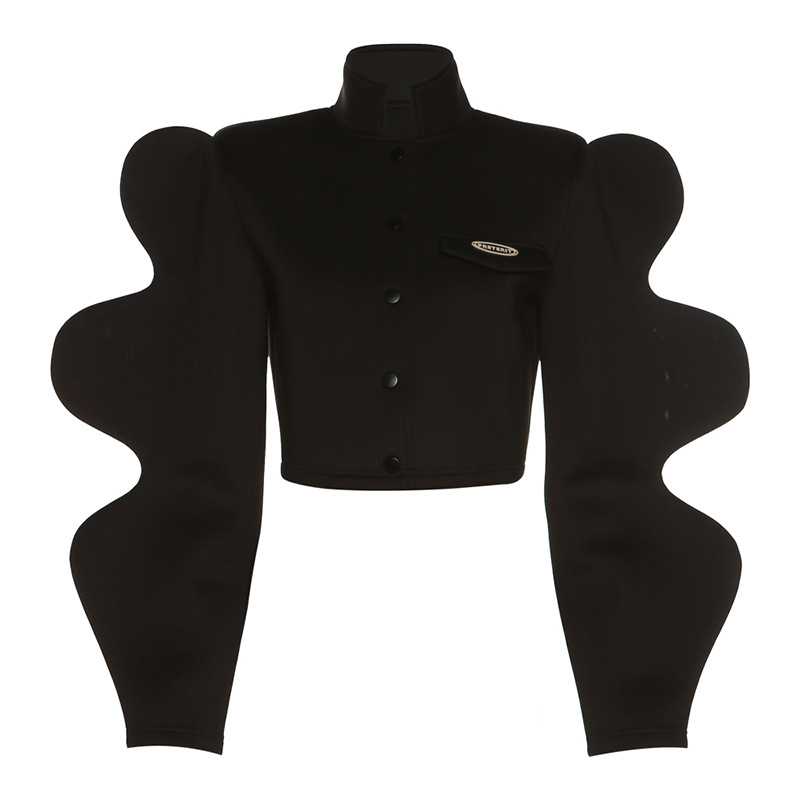 유럽과 미국 스타일 2022 가을과 겨울 새로운 여성 의류 패션 스탠드 칼라 싱글 브레스트 크리에이티브 랜턴 슬리브 재킷 재킷
