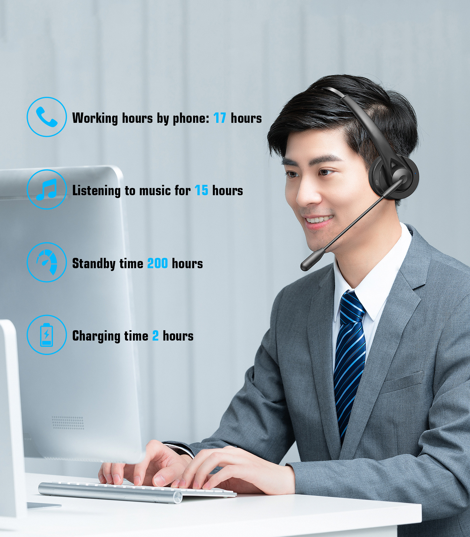 개인 맞춤형 비즈니스 헤드셋 블루투스 이어폰 e스포츠 무선 게임 트럭 운전사용 ENC 소음 감소 기능