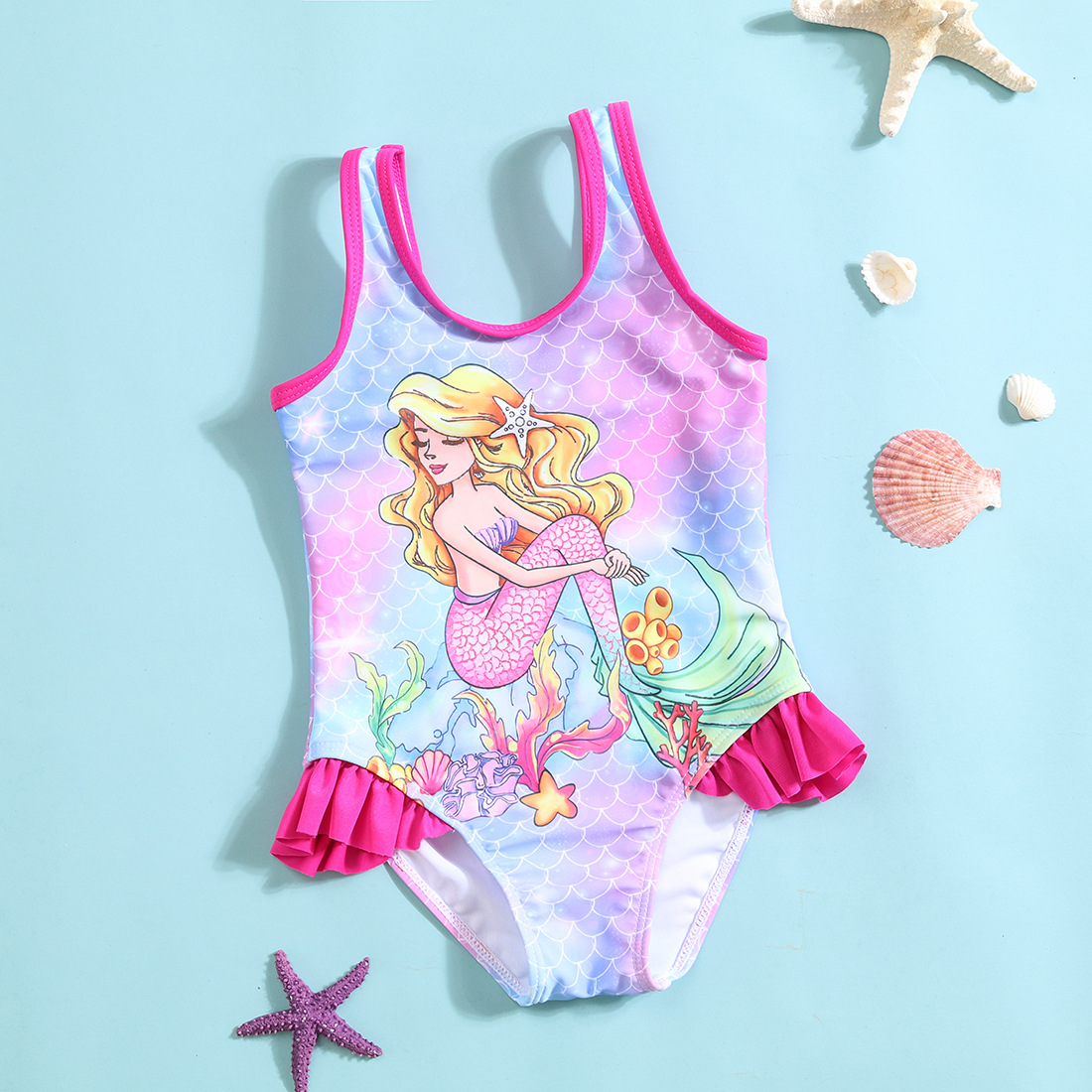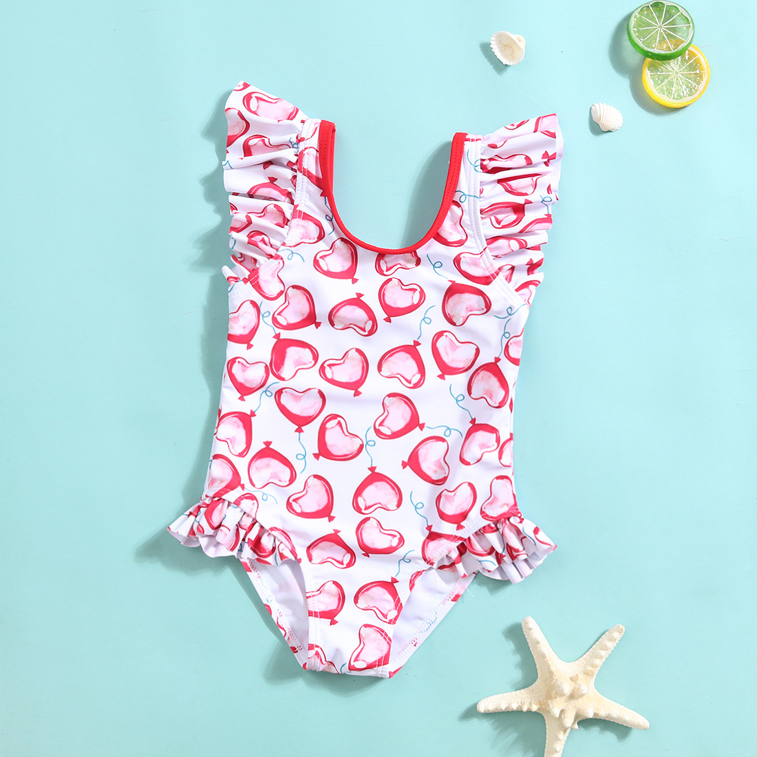 새로운 여자 원피스 수영복 수박 프릴 달콤한 귀여운 여자 아기 수영복 어린이 편안한 고탄성 하이 퀄리티