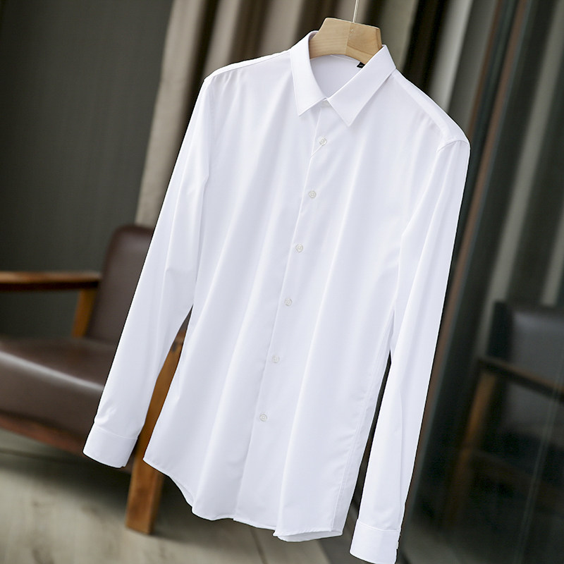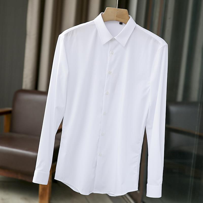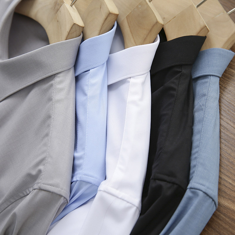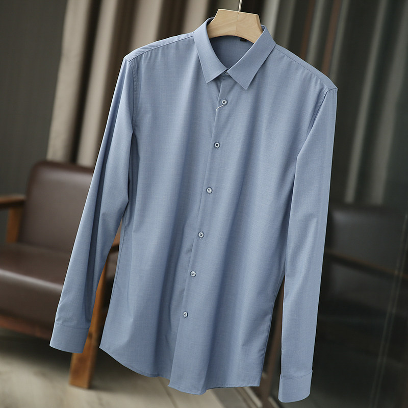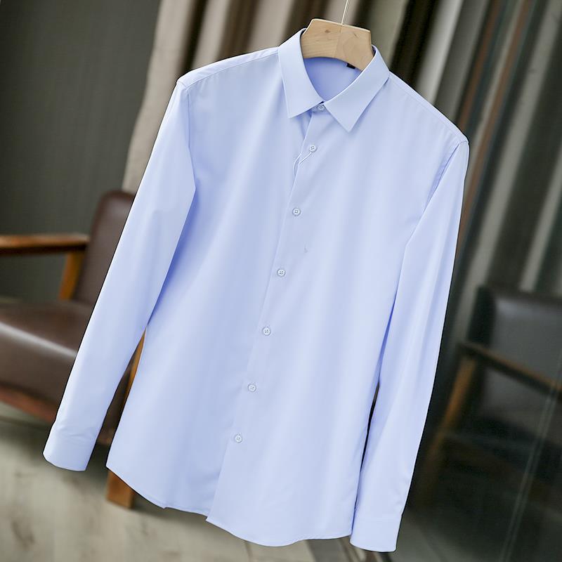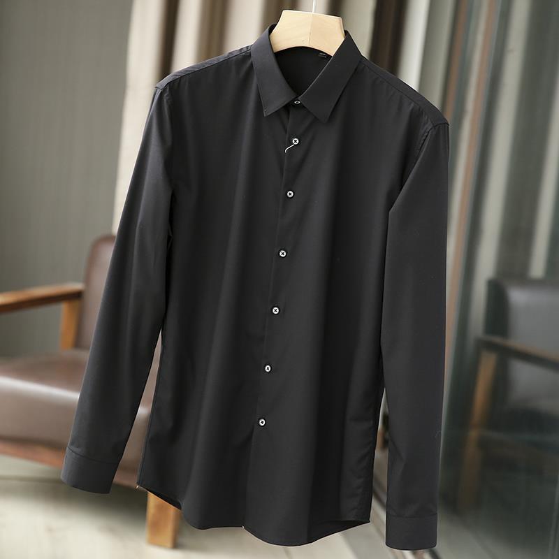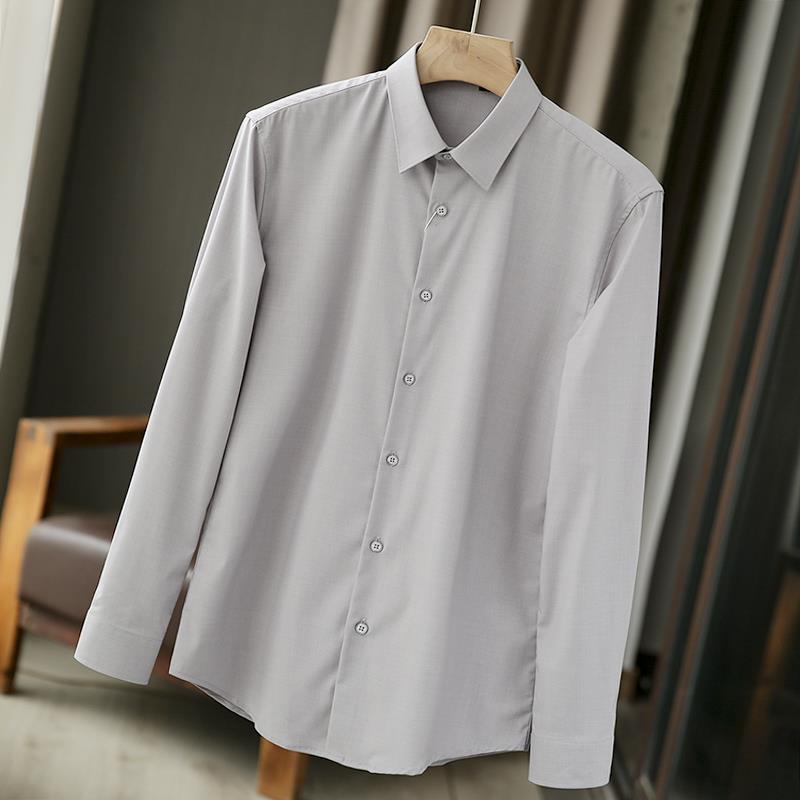 업그레이드된 대나무 섬유 오프라인 4000 + 봄 남성용 주름 방지 실키 솔리드 컬러 비즈니스 캐주얼 긴팔 셔츠