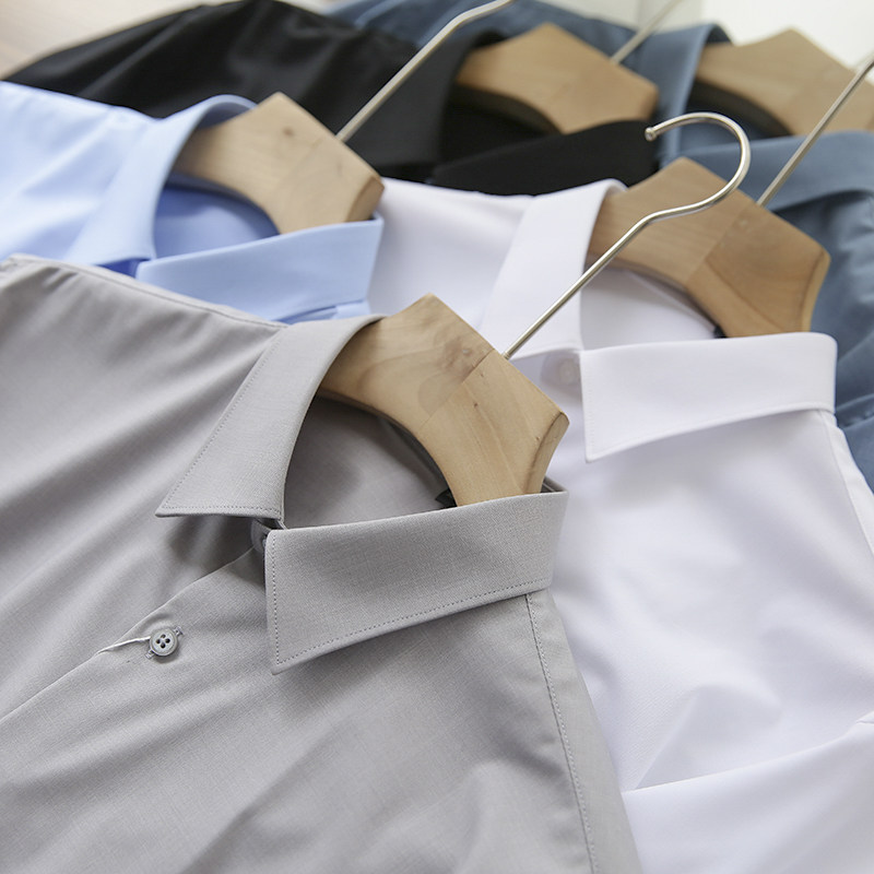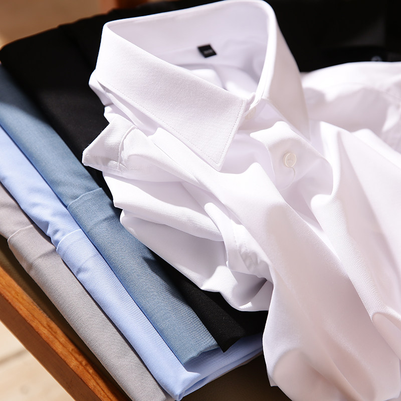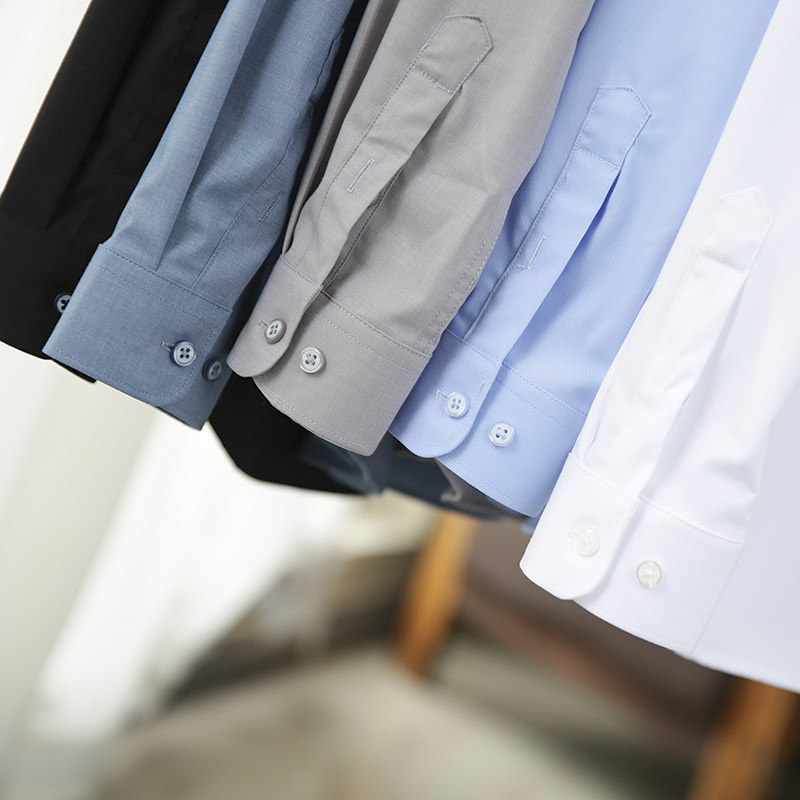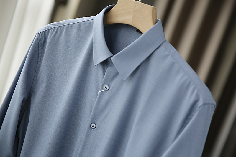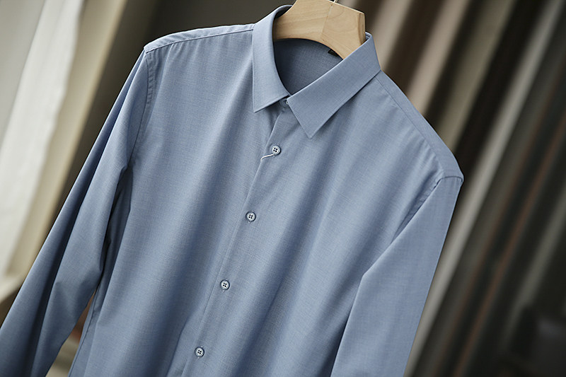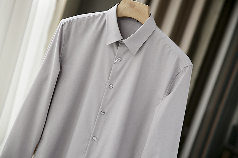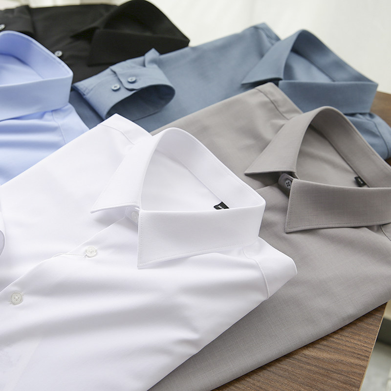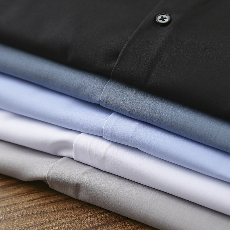 업그레이드된 대나무 섬유 오프라인 4000 + 봄 남성용 주름 방지 실키 솔리드 컬러 비즈니스 캐주얼 긴팔 셔츠