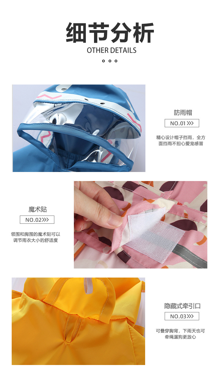 애완동물 비옷, 오리 스타일, 중대형견용 견인 가능, 꼬리가 보이는 토끼 모양의 애완동물 비옷, 반사 스트립이 있는 강아지 비옷스토어 가기