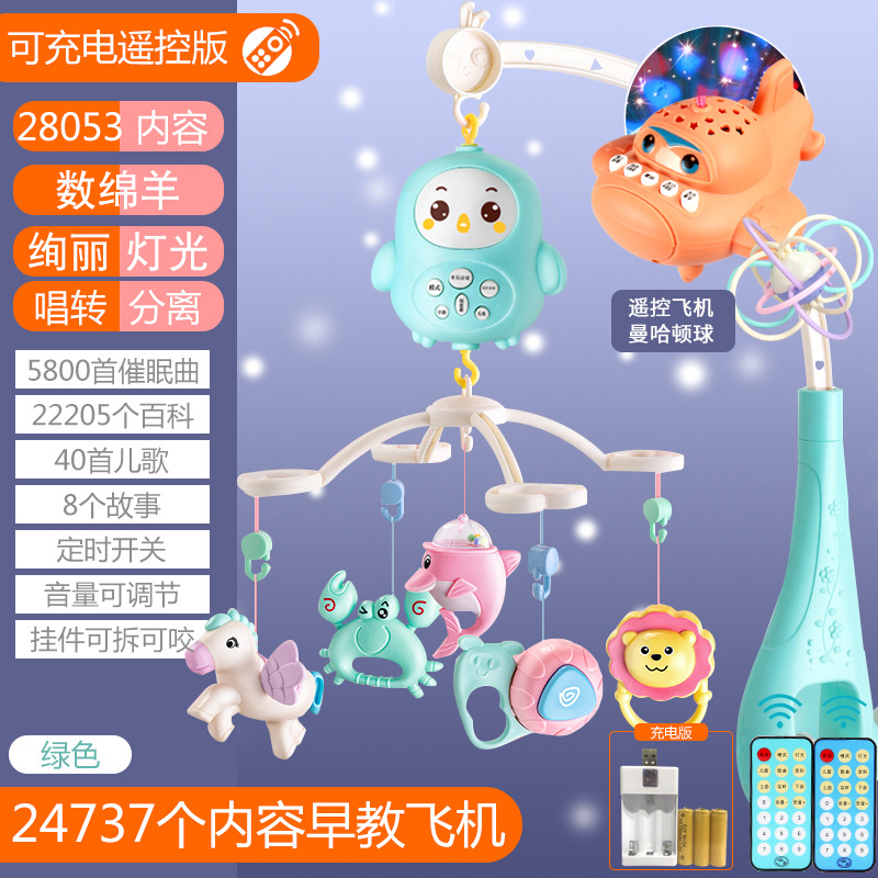 [비행기를 보내기 위해 충전 버전 구매] 신생아 아기 장난감 원격 제어 회전 음악 침대 옆 벨 선물 상자 딸랑이