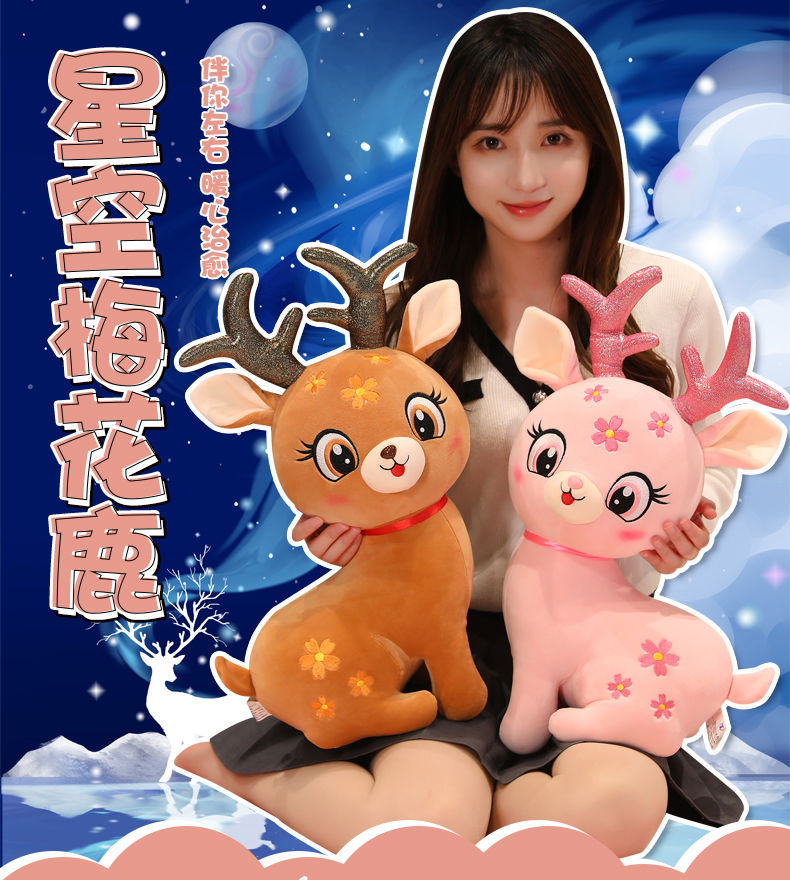 시뮬레이션 귀여운 스타 시카 사슴 봉제 장난감 fawn 인형 헝겊 인형 여성 생일 선물 도매