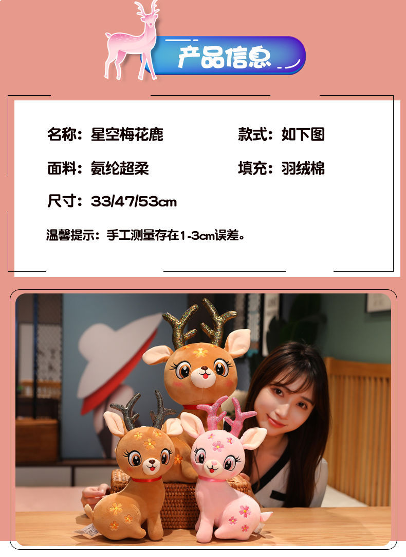 시뮬레이션 귀여운 스타 시카 사슴 봉제 장난감 fawn 인형 헝겊 인형 여성 생일 선물 도매스토어 가기