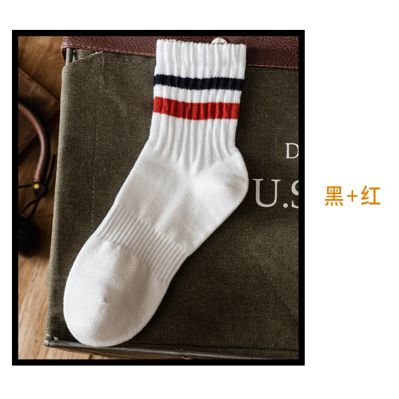 양말 남자의 유행 중간 길이 양말 가을 일본식 흰색 두꺼운 라인 스포츠 스트라이프 여성 더미 소나무 스타킹 면