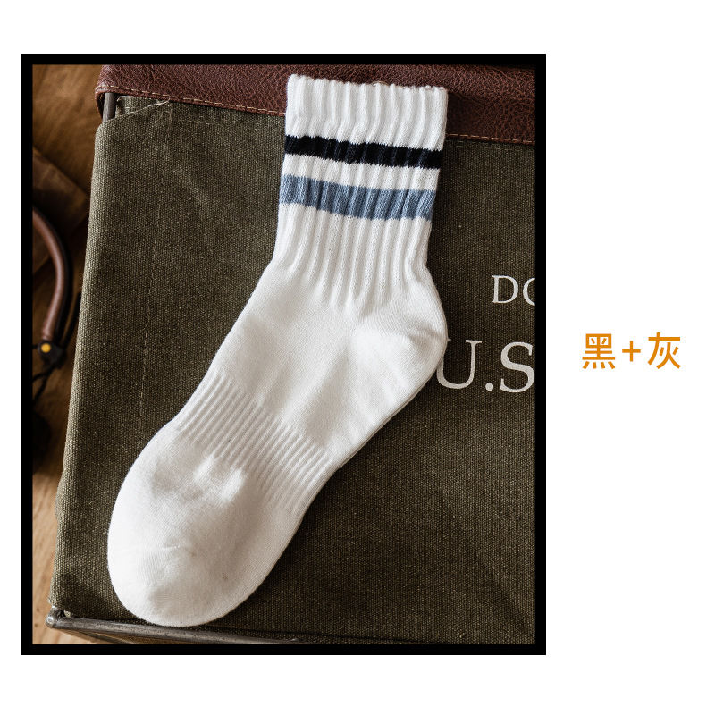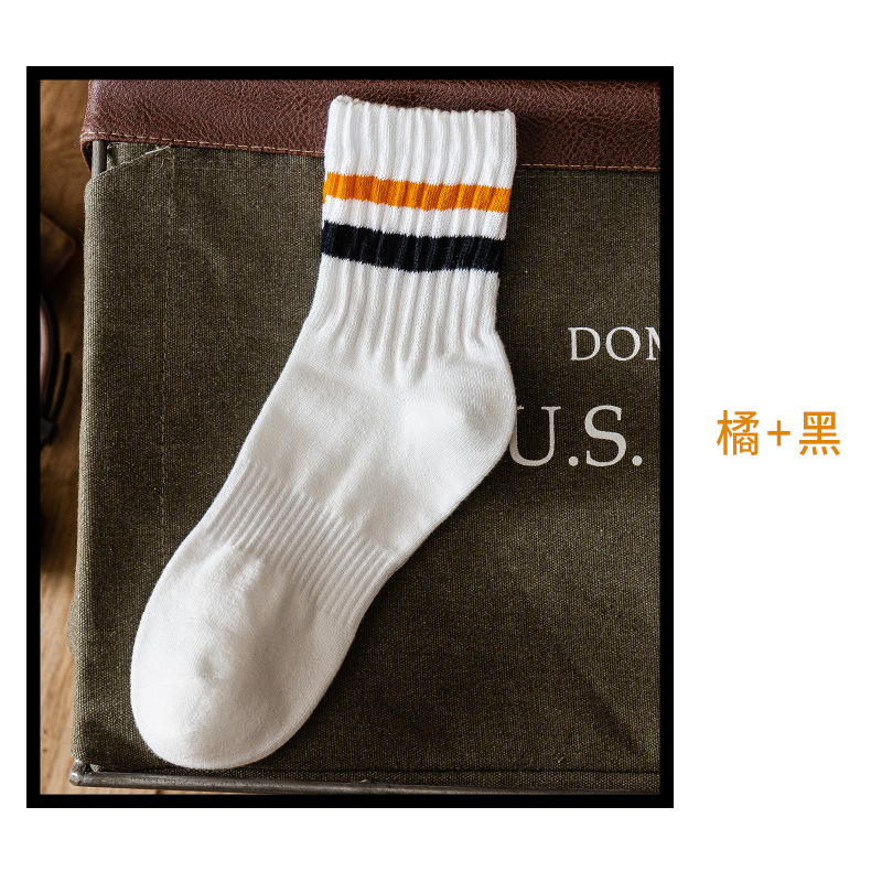 양말 남자의 유행 중간 길이 양말 가을 일본식 흰색 두꺼운 라인 스포츠 스트라이프 여성 더미 소나무 스타킹 면스토어 가기