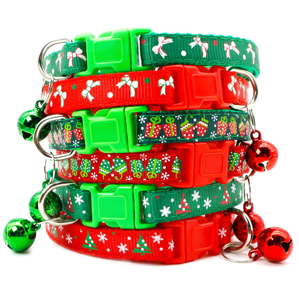 1cm 인쇄 애완 동물 크리스마스 트리 나비 매듭 휴일 고양이 얼굴 버클 나비 매듭 장식 칼라 고양이 개 목 링 벨스토어 가기