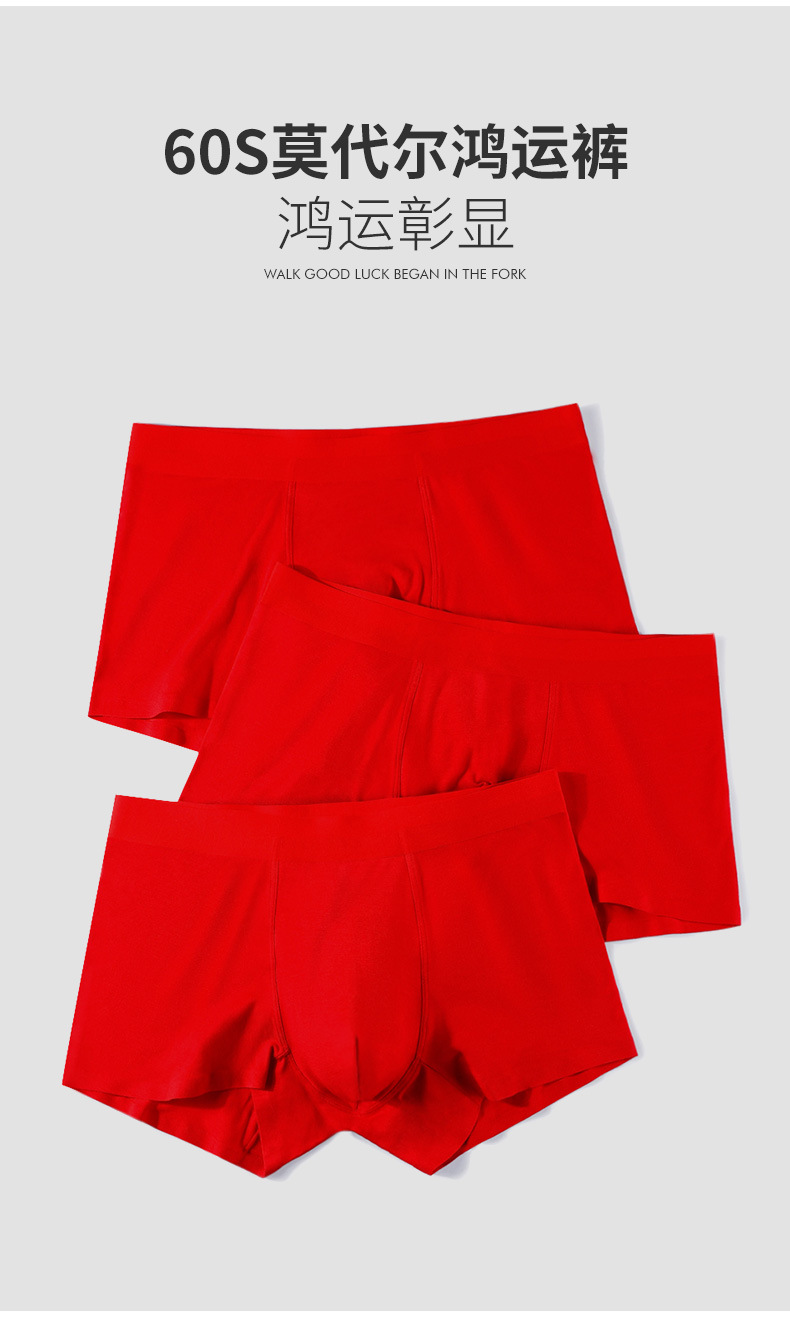 Bermingnian 빨간 중간 허리 남자 속옷 모달 복서 원활한 항균 통기성 빨간 속옷 복서스토어 가기