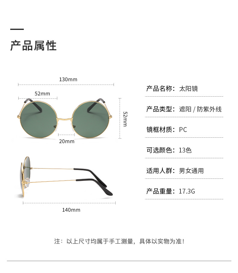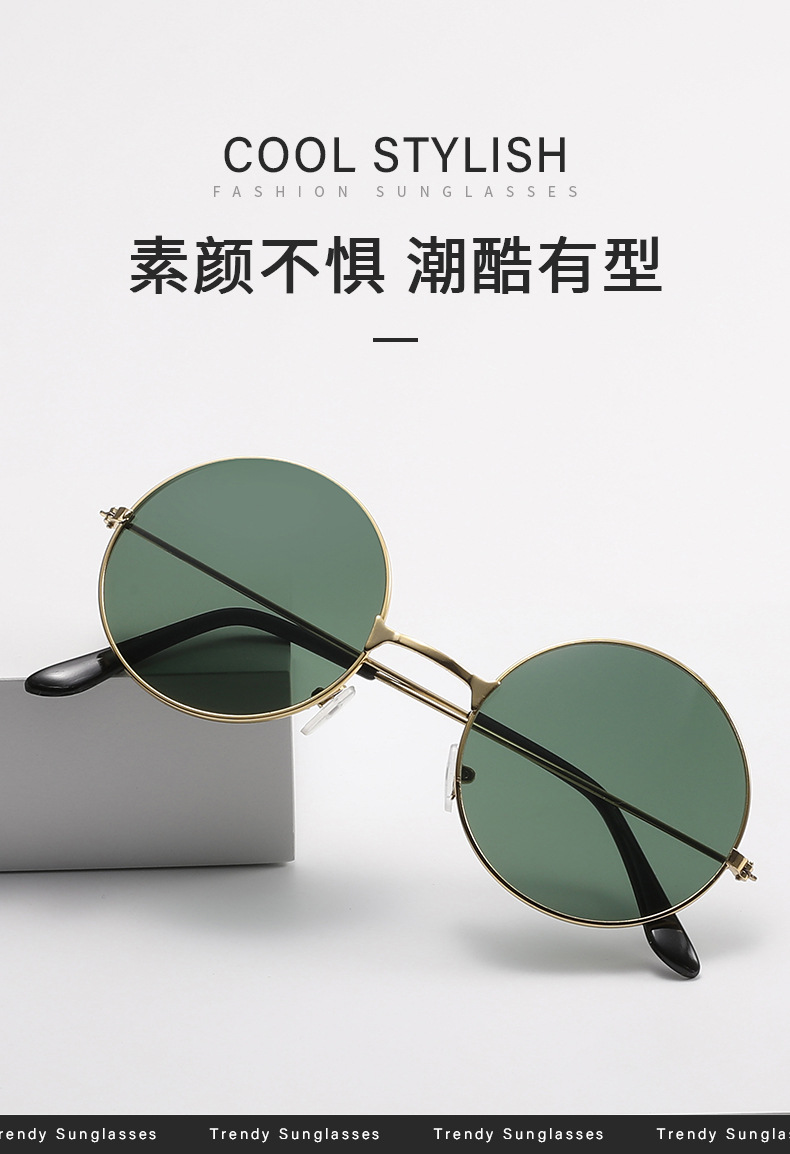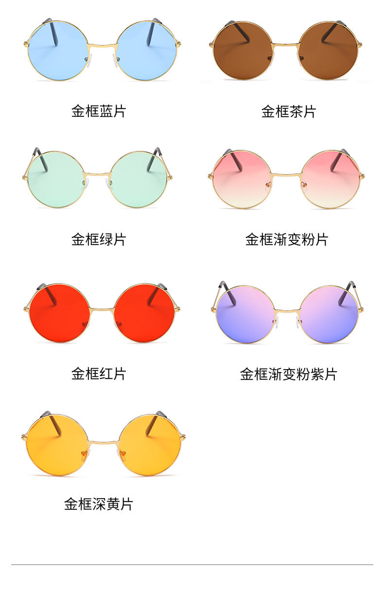 크로스 보더 레트로 라운드 마린 메탈 선글라스 캔디 컬러 세련된 메탈 프레임 하라주쿠 남성과 여성의 다채로운 안경