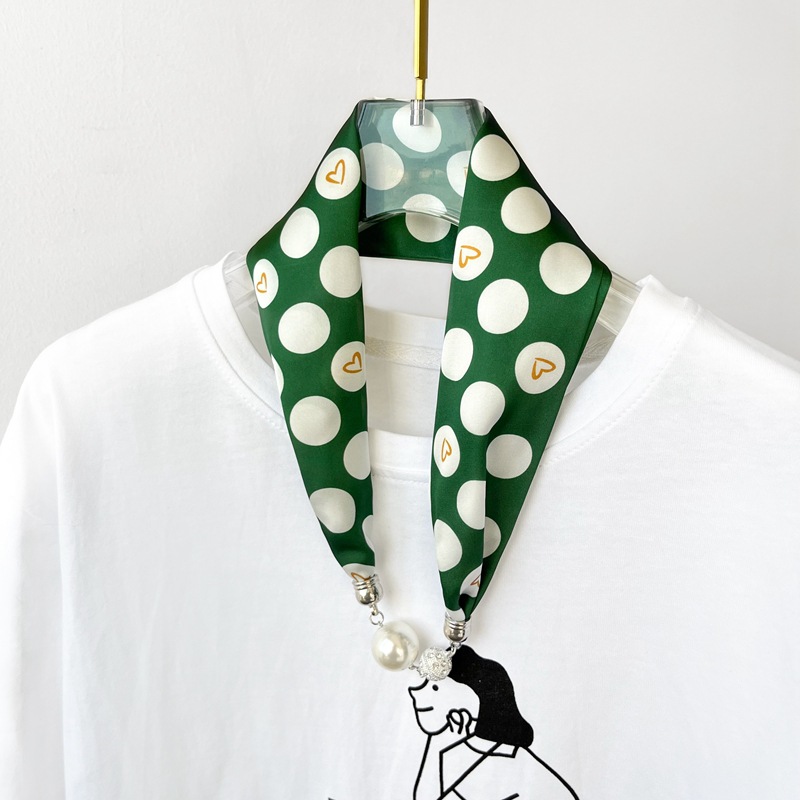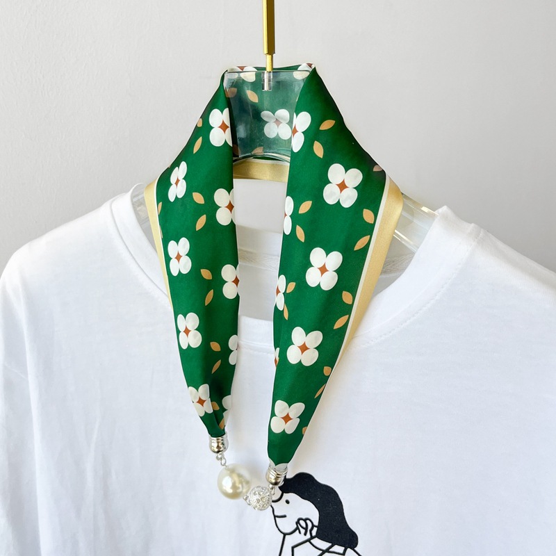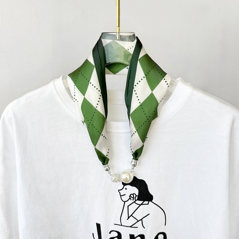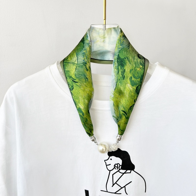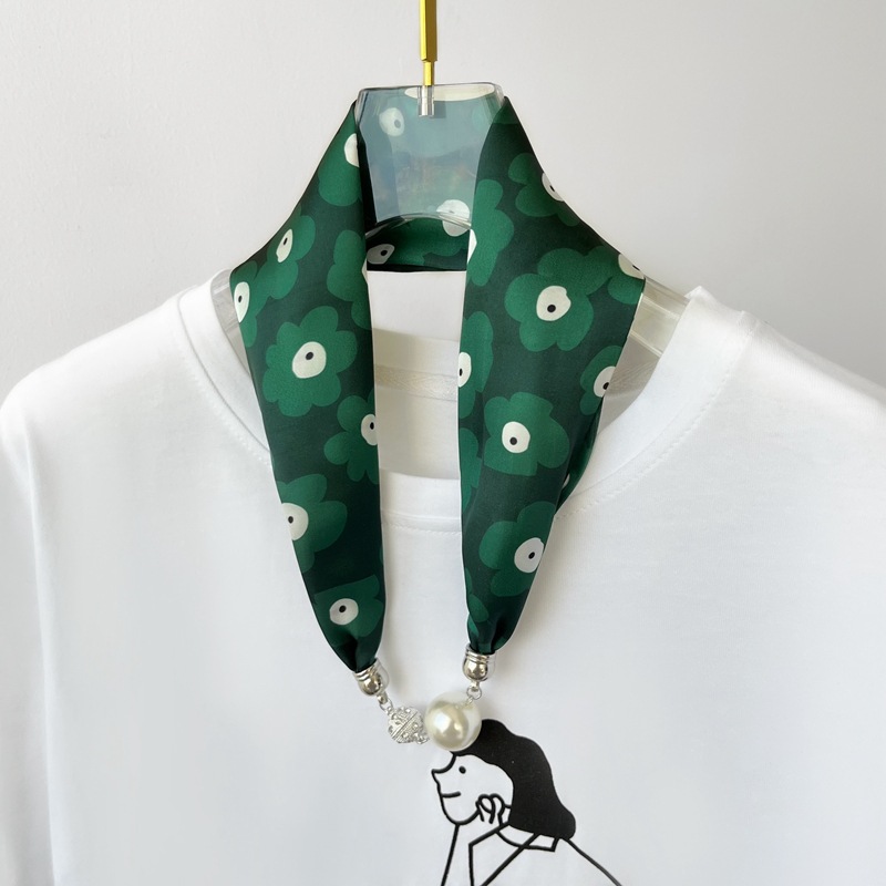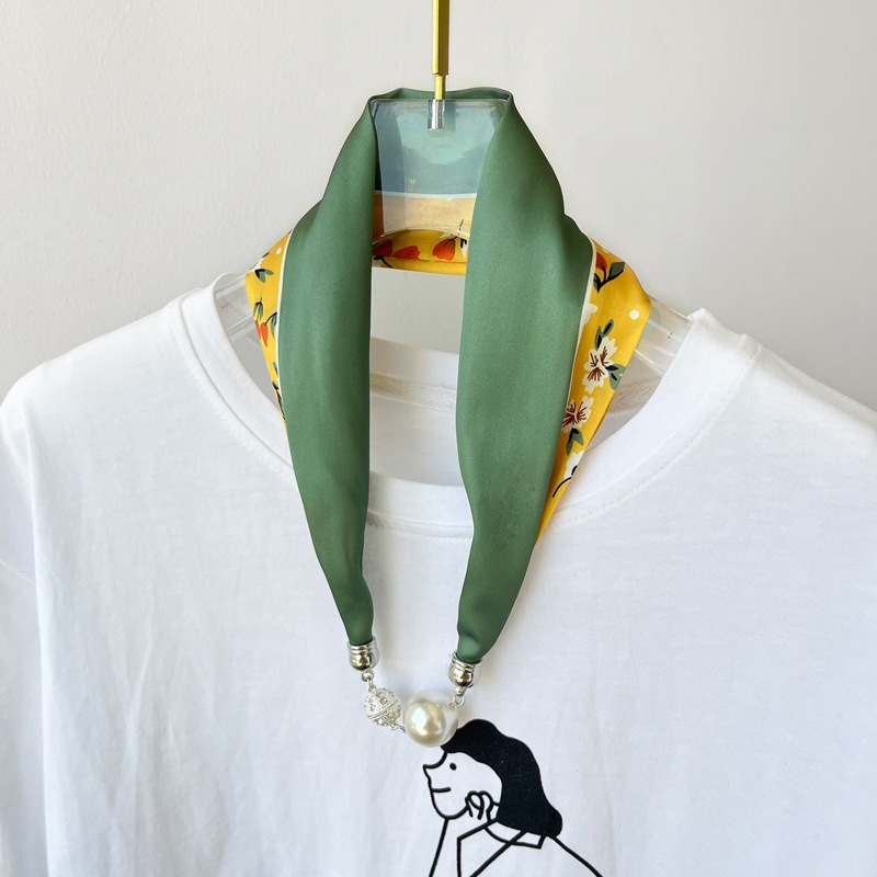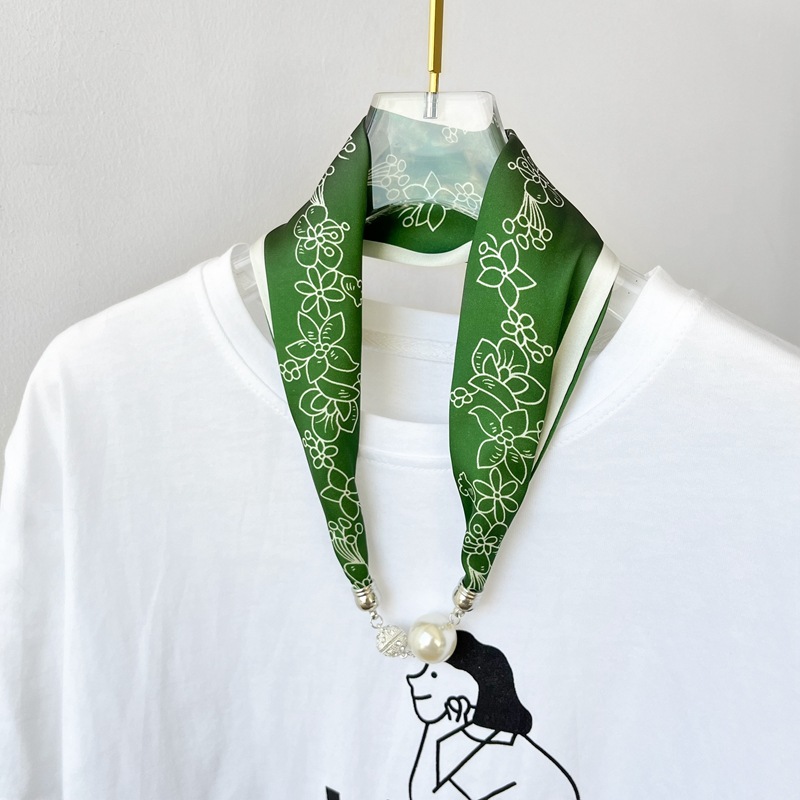 녹색 실크 스카프 여성용 마그네틱 버클 진주 여름 목걸이 모든 매치 장식 스카프 게으른 스카프 장식 팔찌 도매스토어 가기
