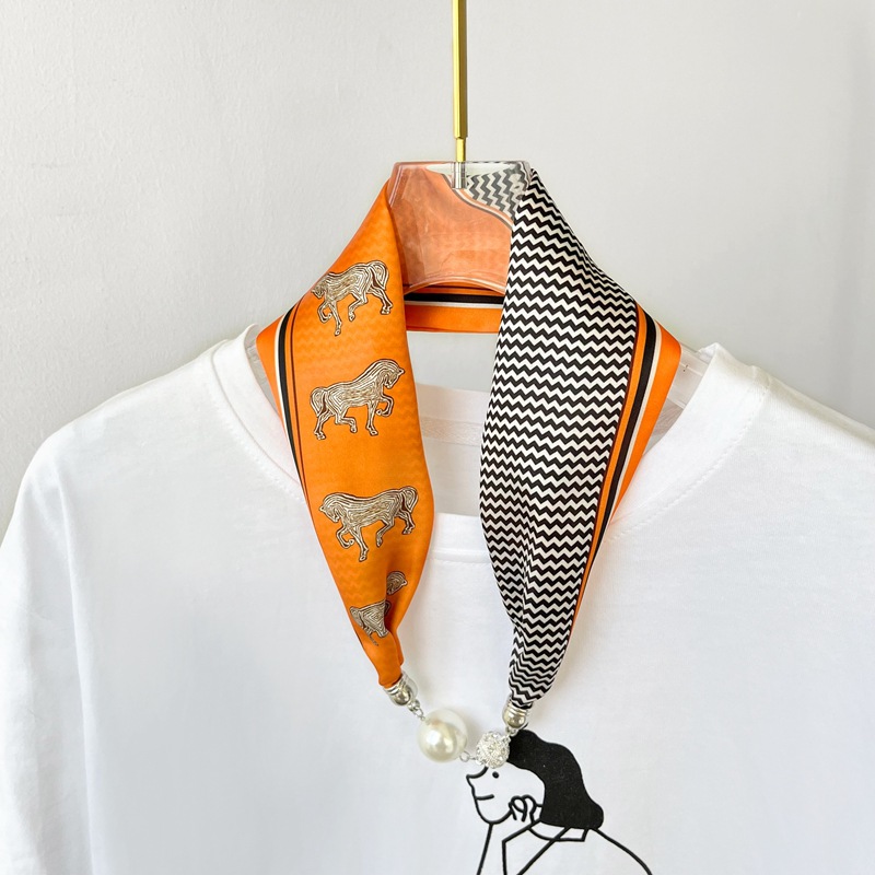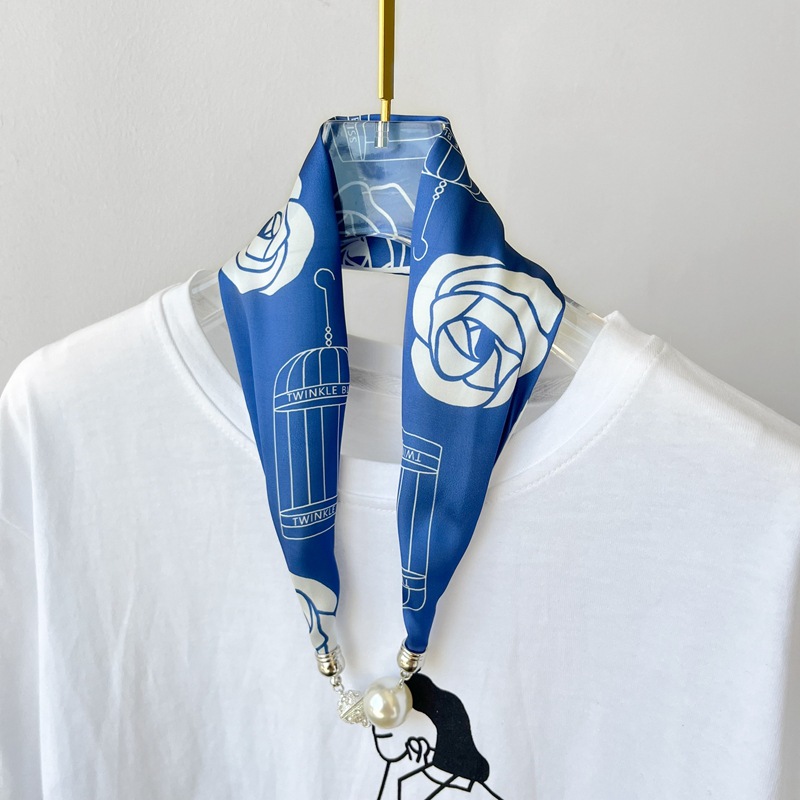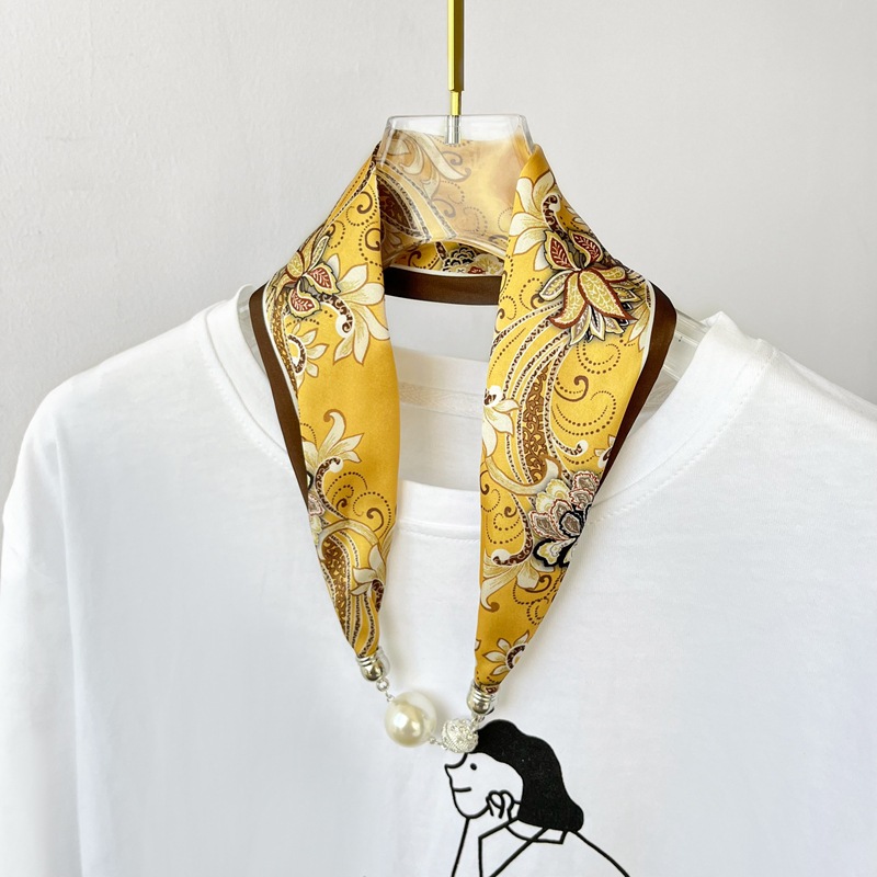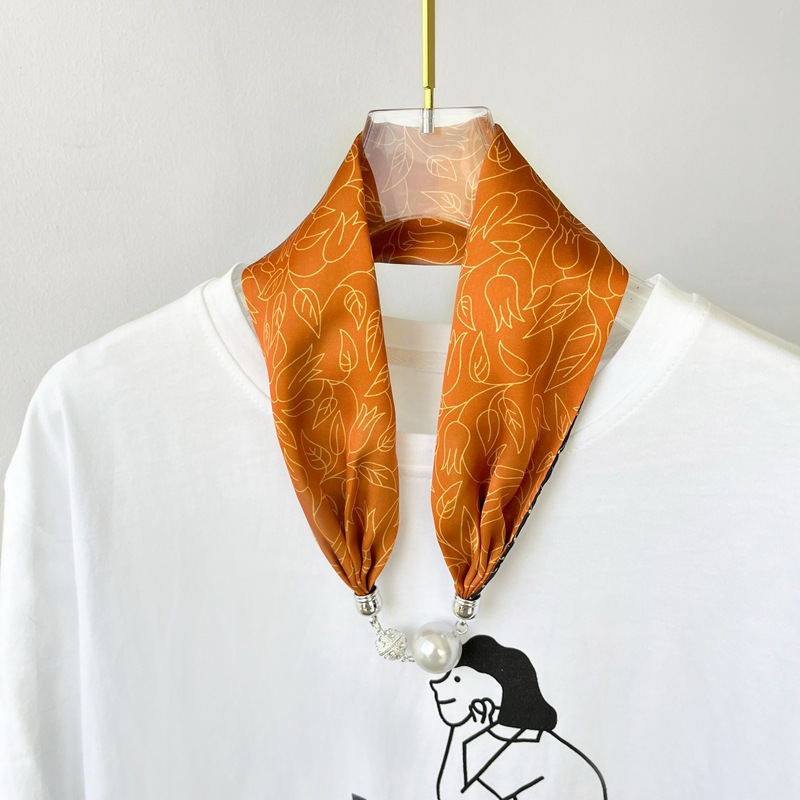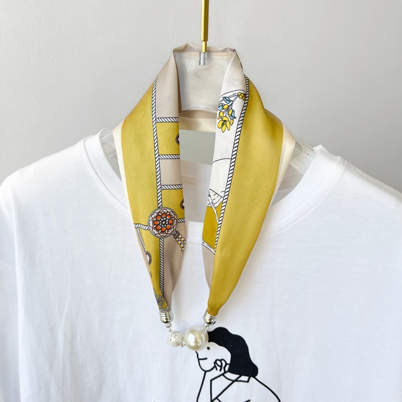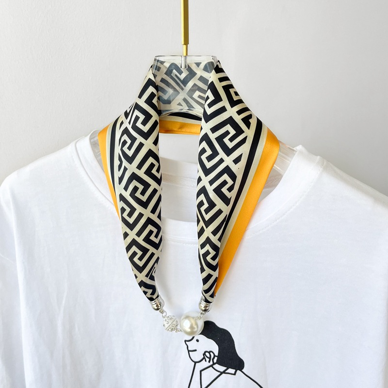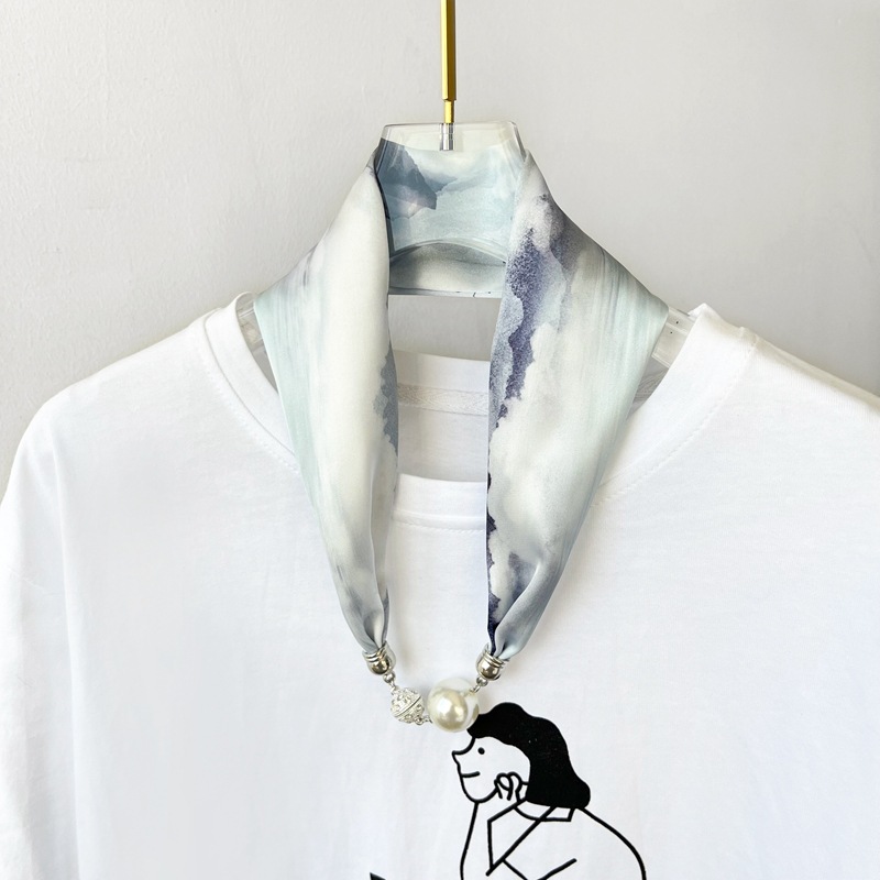 녹색 실크 스카프 여성용 마그네틱 버클 진주 여름 목걸이 모든 매치 장식 스카프 게으른 스카프 장식 팔찌 도매스토어 가기