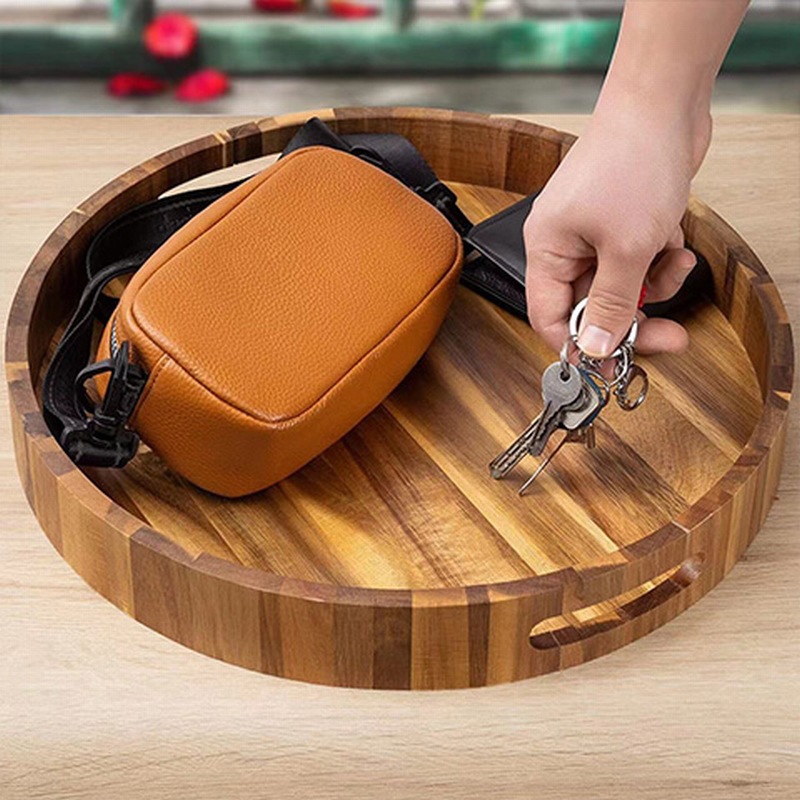 다기능 나무 둥근 가정용 저장 트레이 아카시아 나무 둥근 트레이 나무 디너 플레이트 핸들 트레이스토어 가기