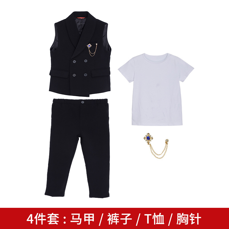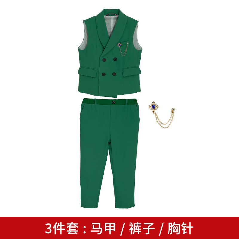 어린이 원피스 2023 새로운 단색 조끼 소년 꽃 소녀 결혼식 사진 공연 옷의 세대를 세트