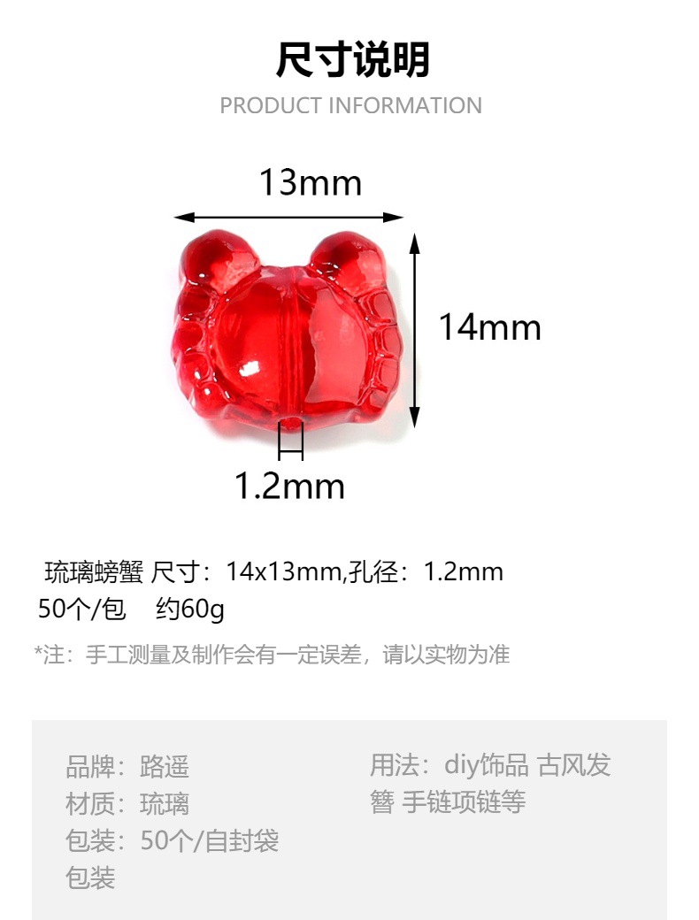 50/팩 컬러 유리 투명 컬러 만화 게 페르시 DIY 어린이 손 끈 보석 액세서리 도매