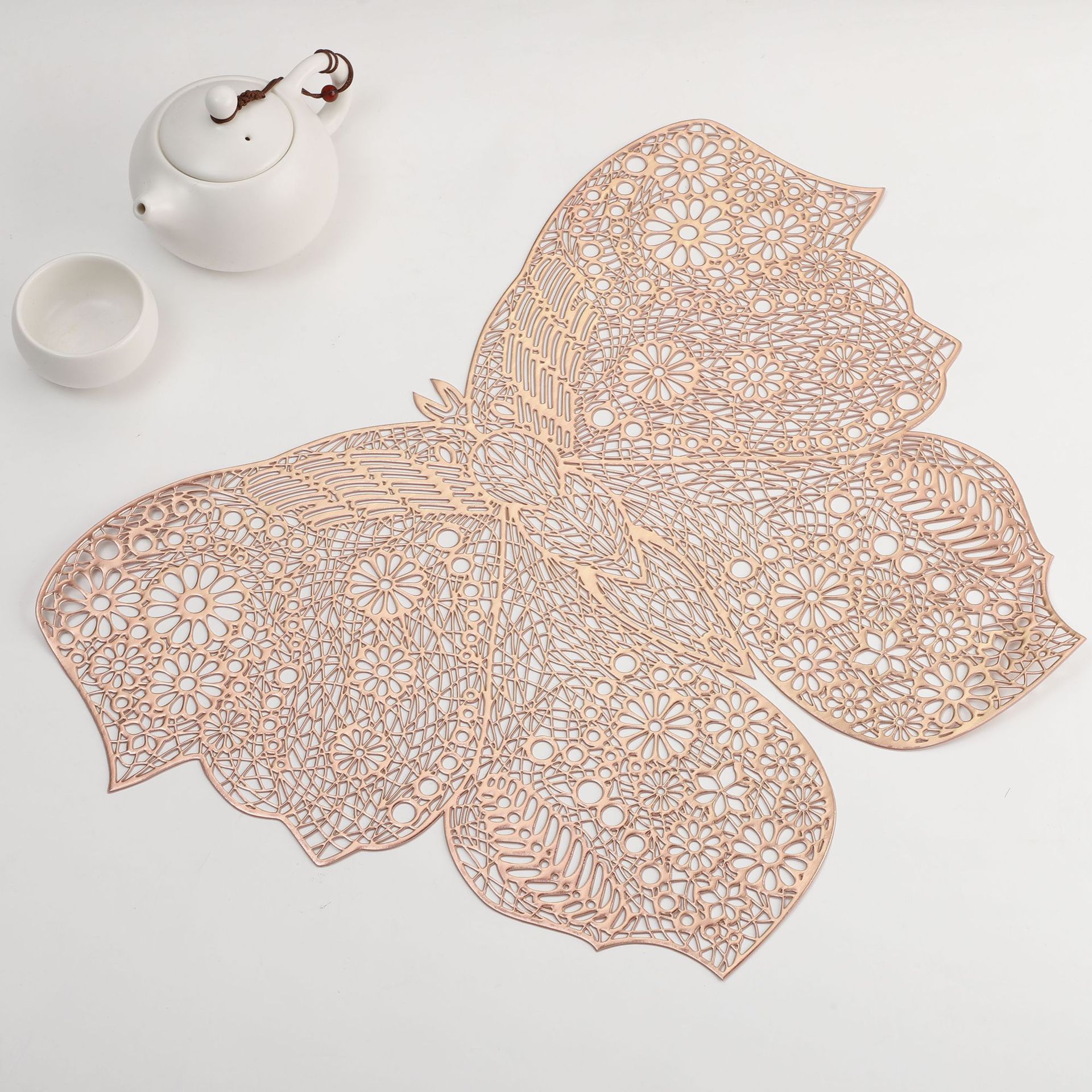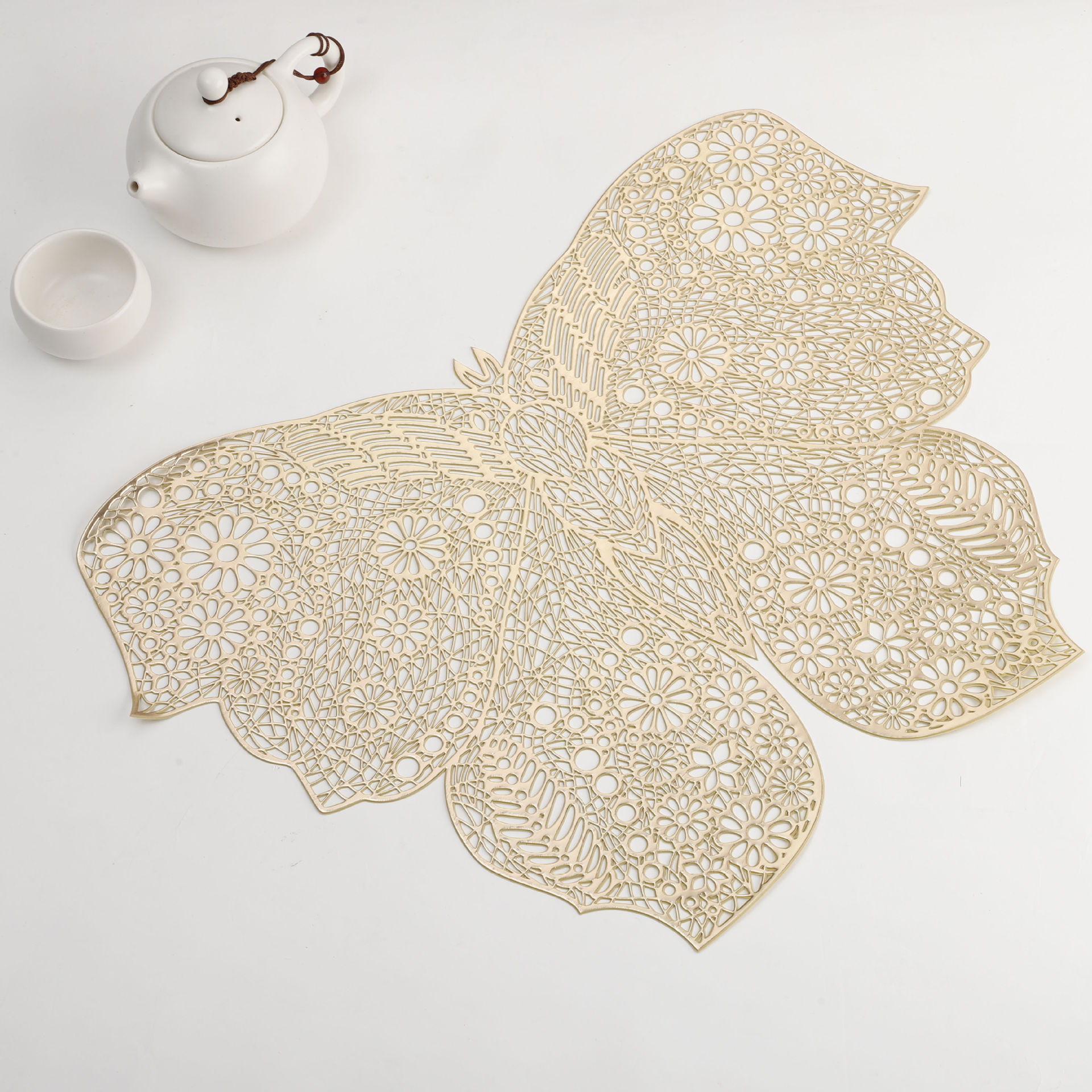 새로운 나비 모양 PVC 미끄럼 방지 코스터 브론징 플레이스매트 북유럽 일본식 중공 크리에이티브 디자인 방수 테이블 매트스토어 가기