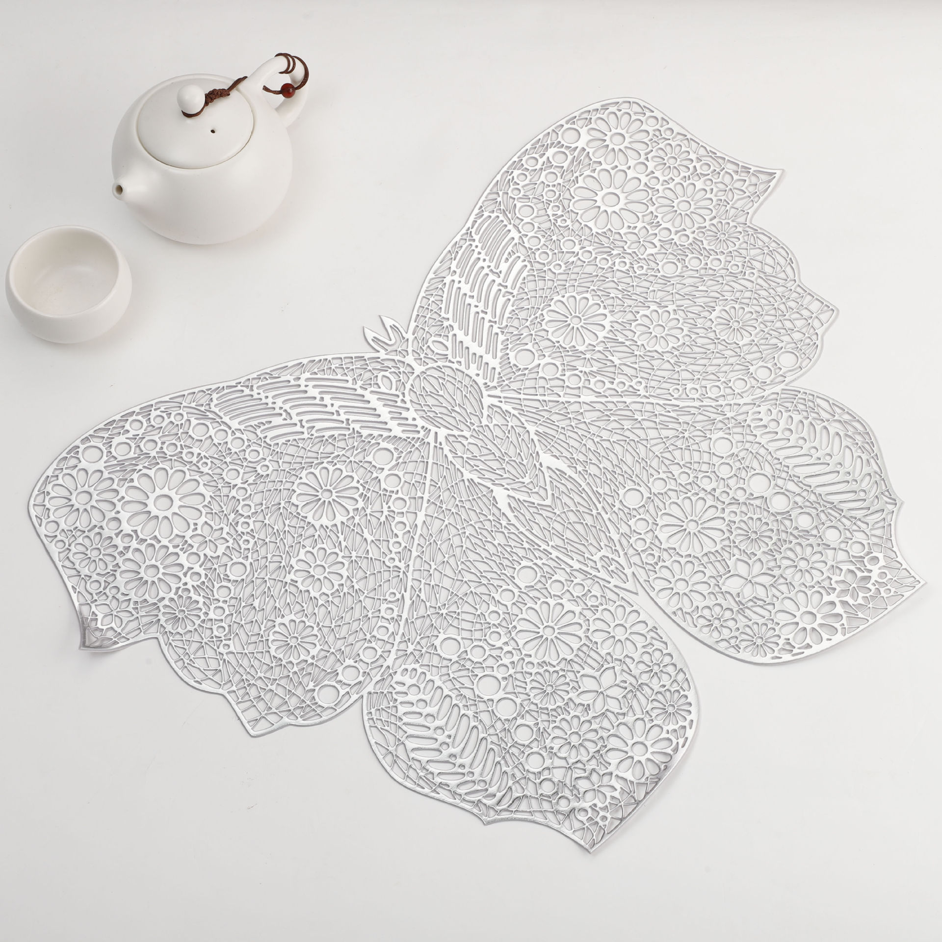 새로운 나비 모양 PVC 미끄럼 방지 코스터 브론징 플레이스매트 북유럽 일본식 중공 크리에이티브 디자인 방수 테이블 매트