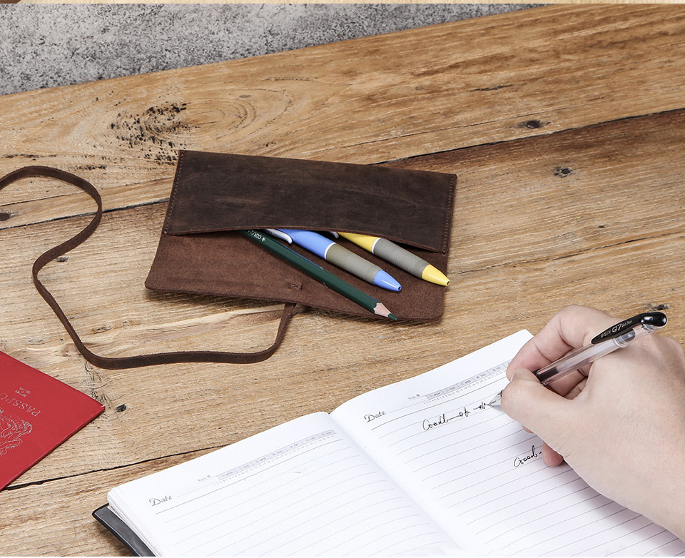 레트로 미친 말 가죽 연필 가방 멀티 팩 창조적 인 바인딩 학생 문구 연필 보관 가방 재고 도매