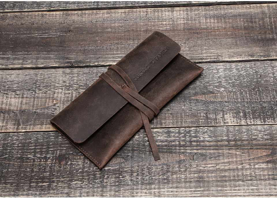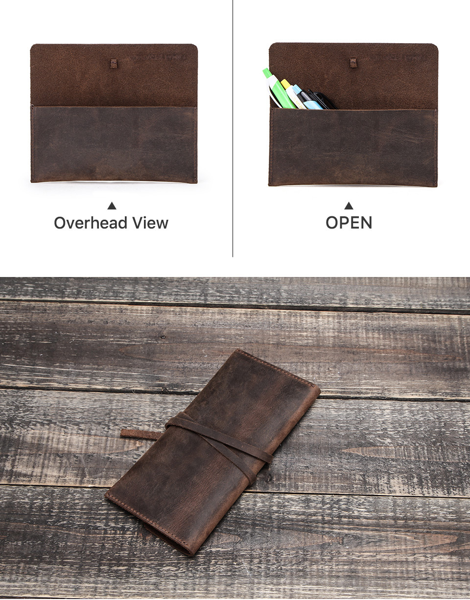 레트로 미친 말 가죽 연필 가방 멀티 팩 창조적 인 바인딩 학생 문구 연필 보관 가방 재고 도매스토어 가기