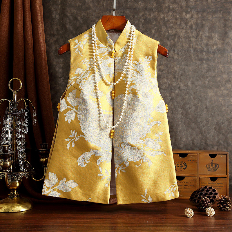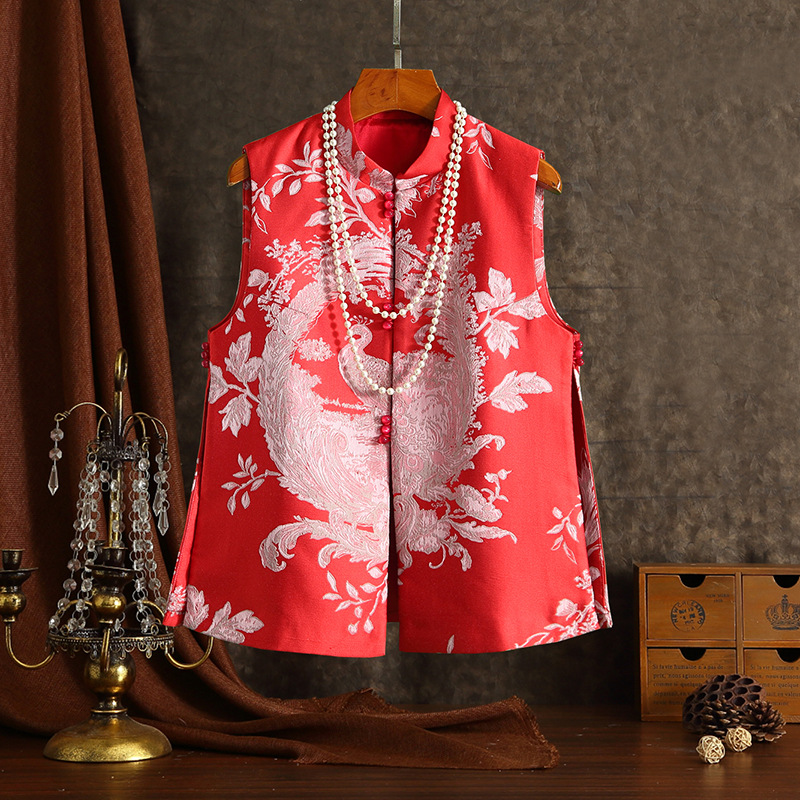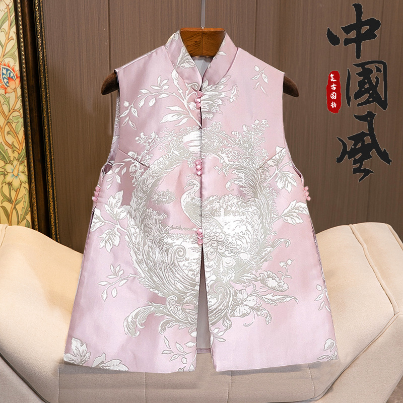 중국 스타일 조끼 여성 의류 2025 신설 가을 · 겨울 젊은 자카드 핑크 민소매 조끼 청삼