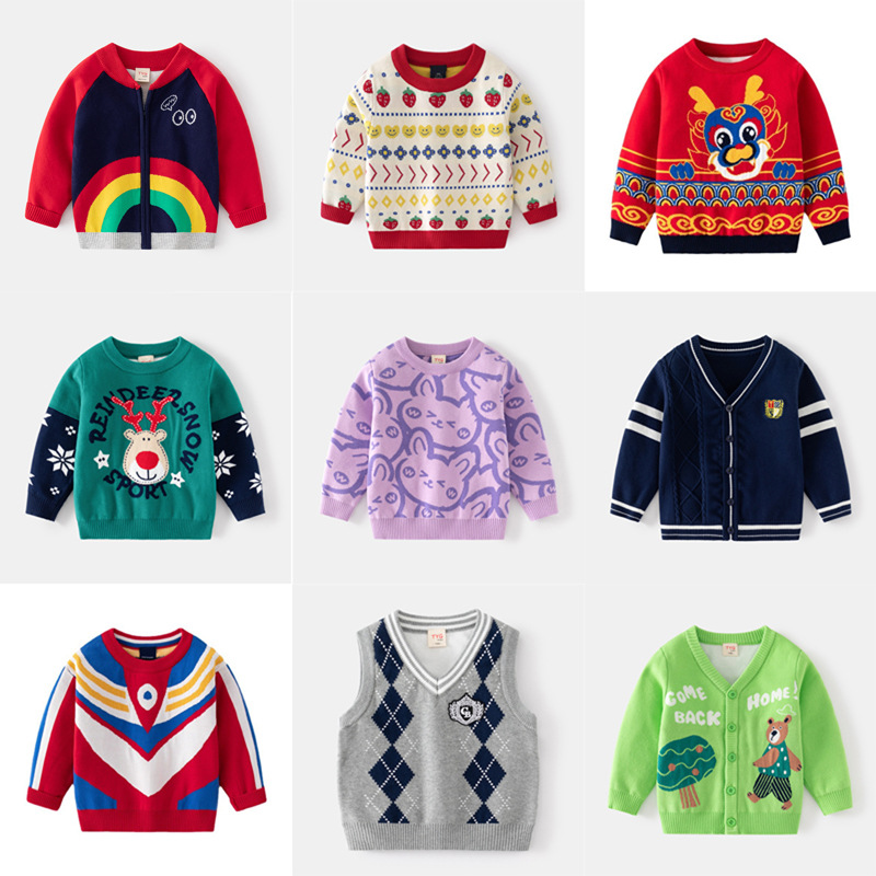 여아 가을 가디건 새로운 어린이 한국 스타일 서양 니트웨어 작은 소녀의 탑 긴 소매 레인보우 코트 대비 색상스토어 가기